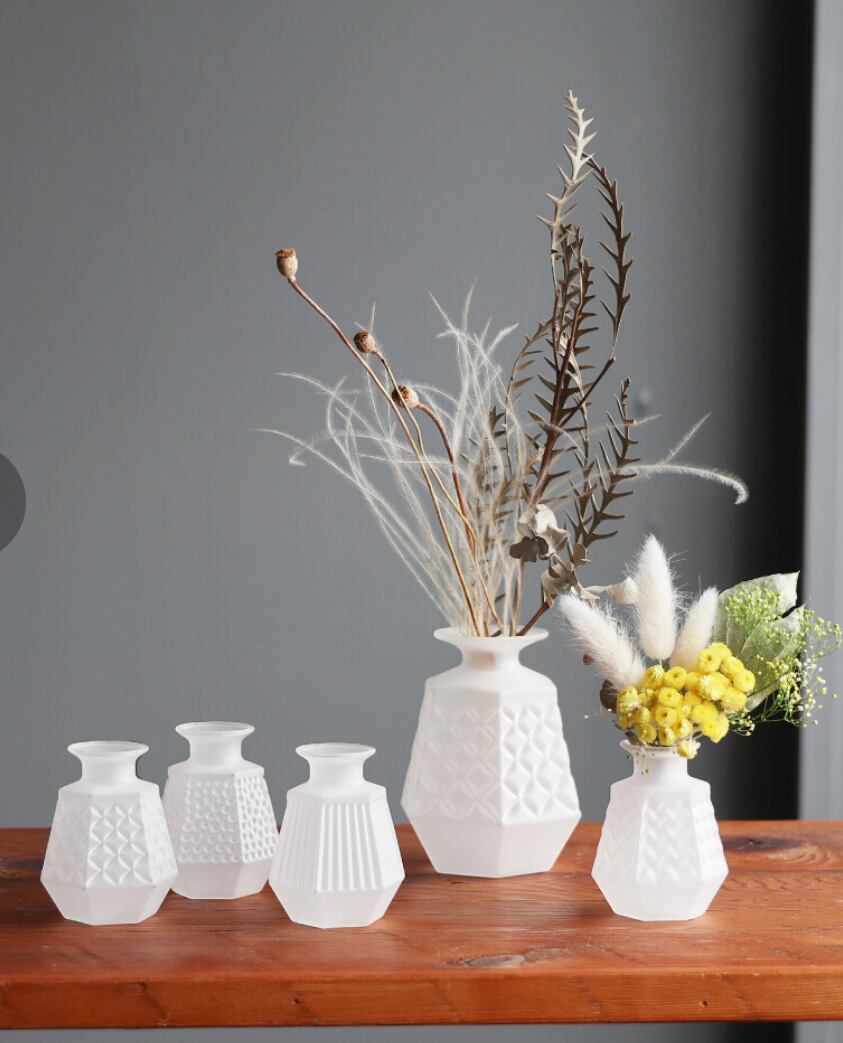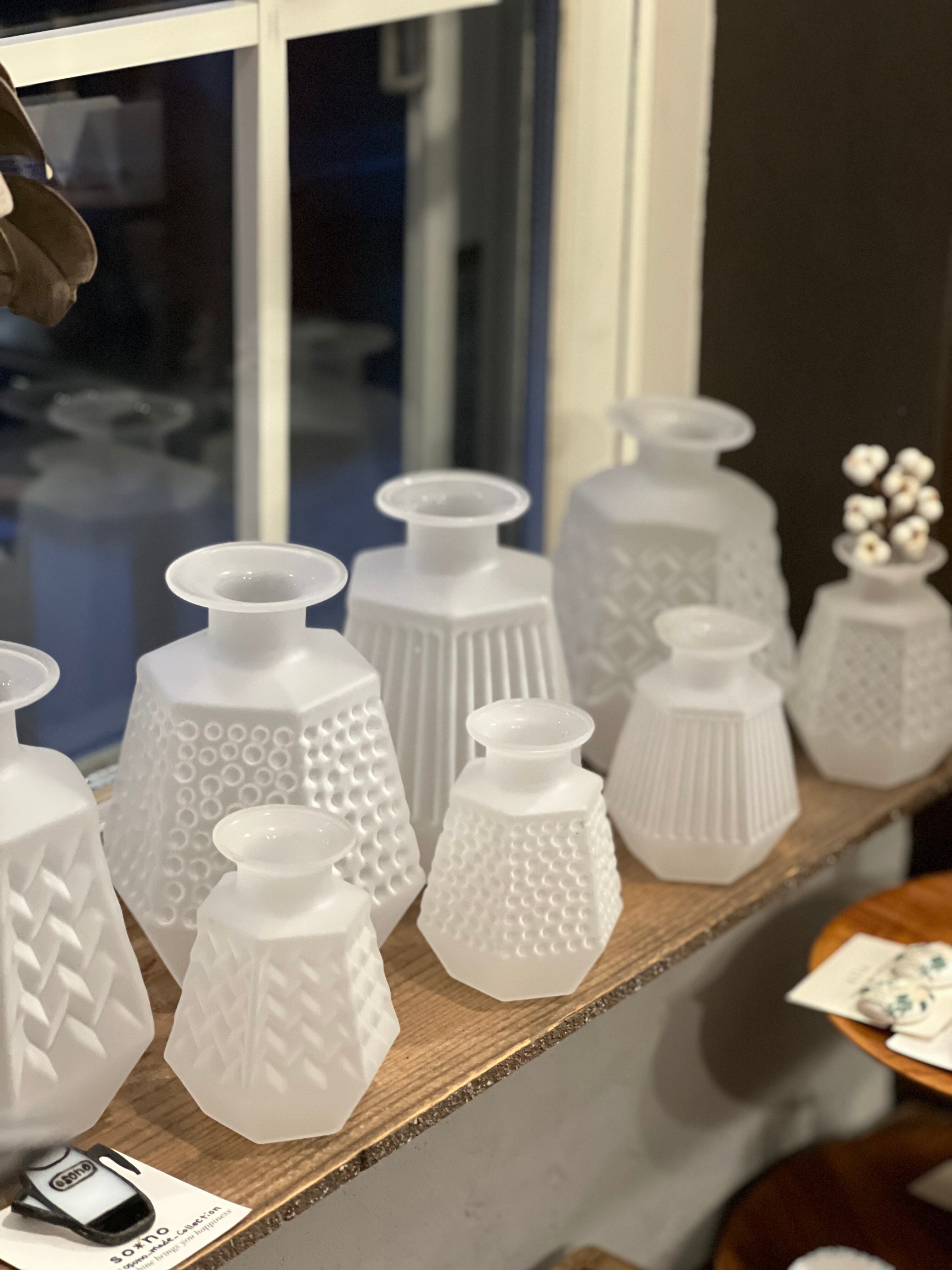 手触りが角砂糖の断面のようなフロストのフラワーベース。