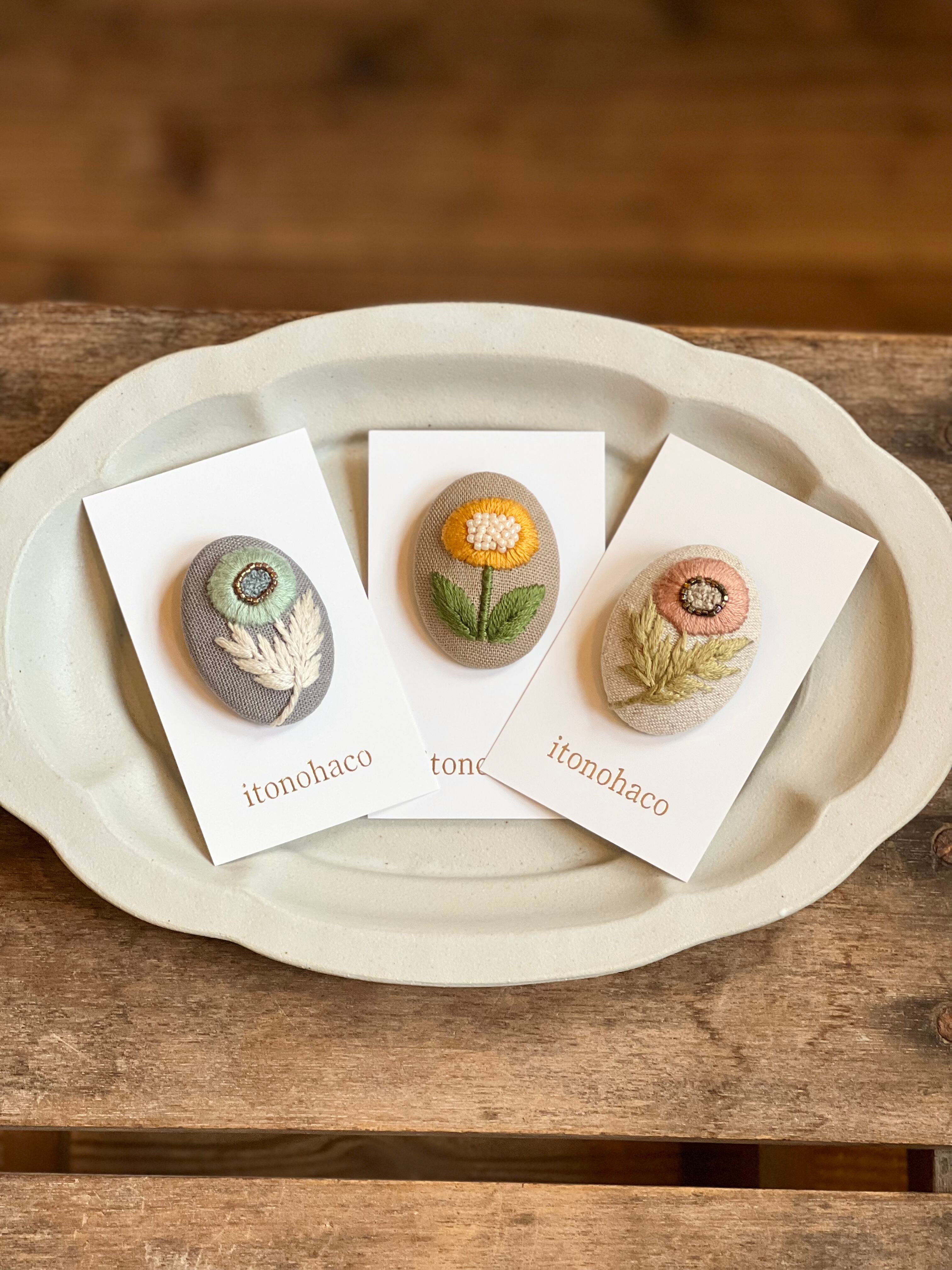 ブランド itonohaco 手刺繍で作られたブローチ 刺繍がとても綺麗です。 3.5cm×4.5cm
