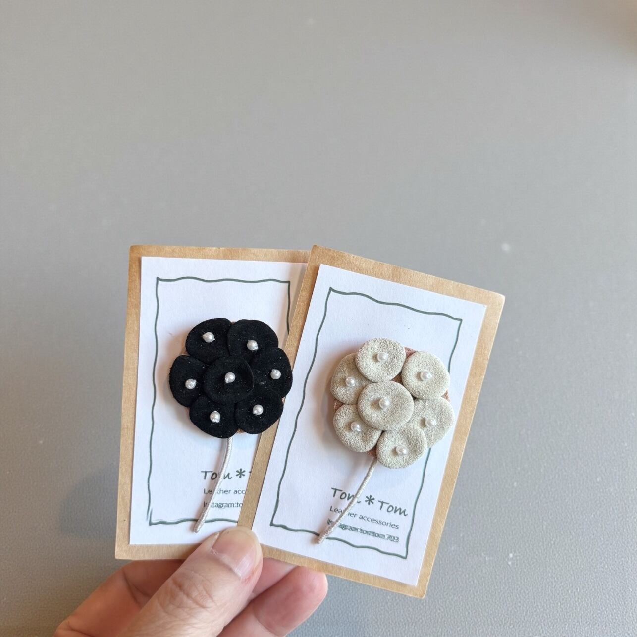 ブランド Tom Tom スエード革 花びらは裏に丸い革があり きちんとつけられているので しっかりしてます。 茎はワイヤーと糸でできております 4cm 長さ6.5cm