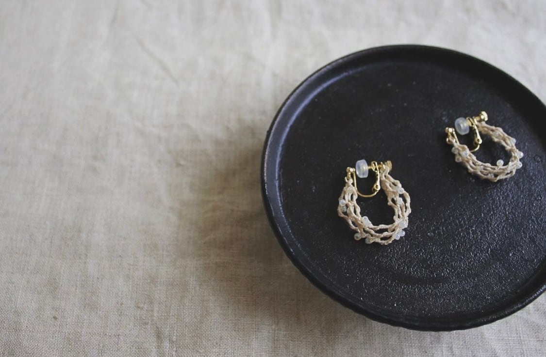 ブランド tea ビーズと糸のイヤリング 糸は硬めなので型崩れなく 可愛いです。 2cm