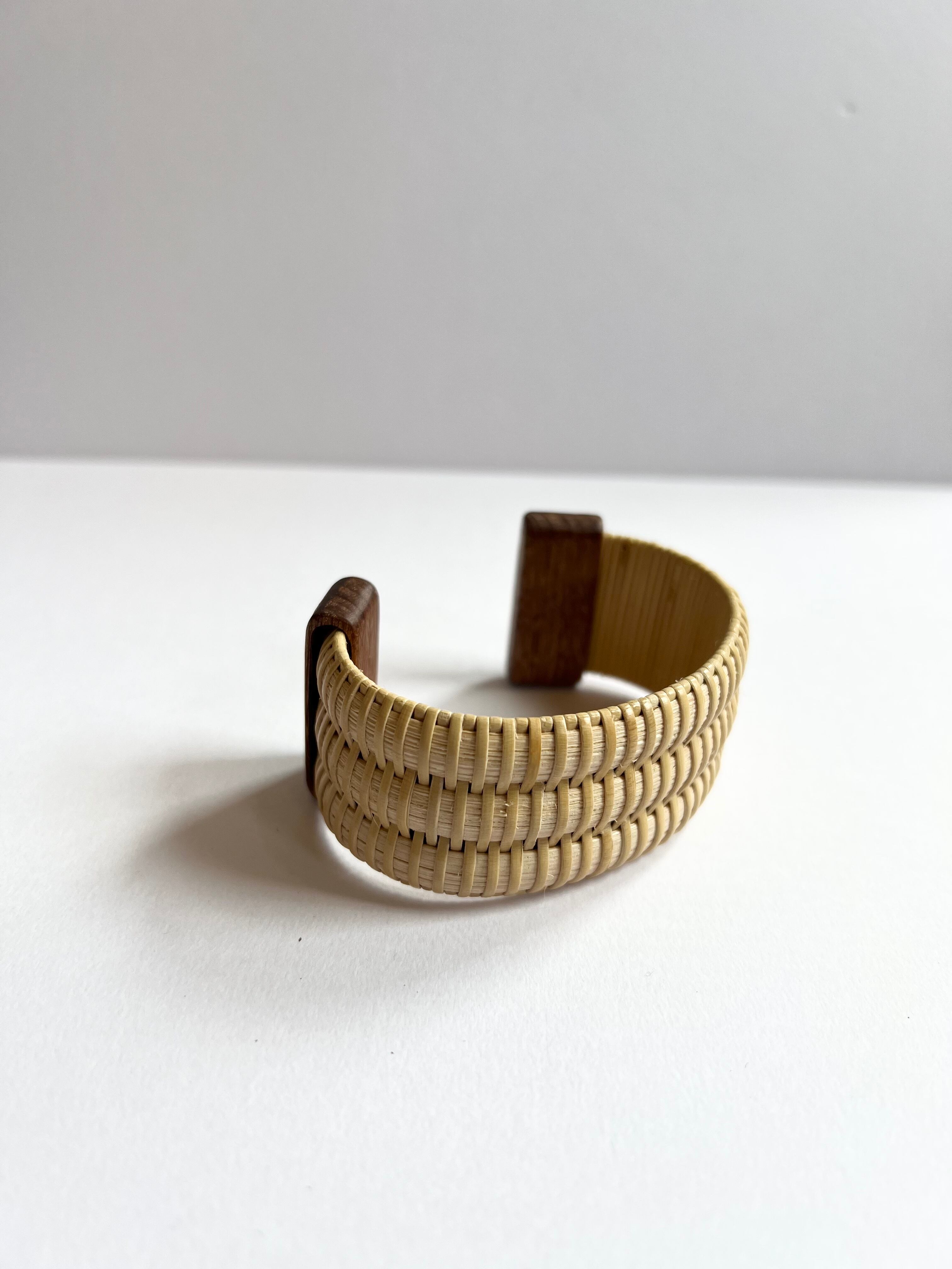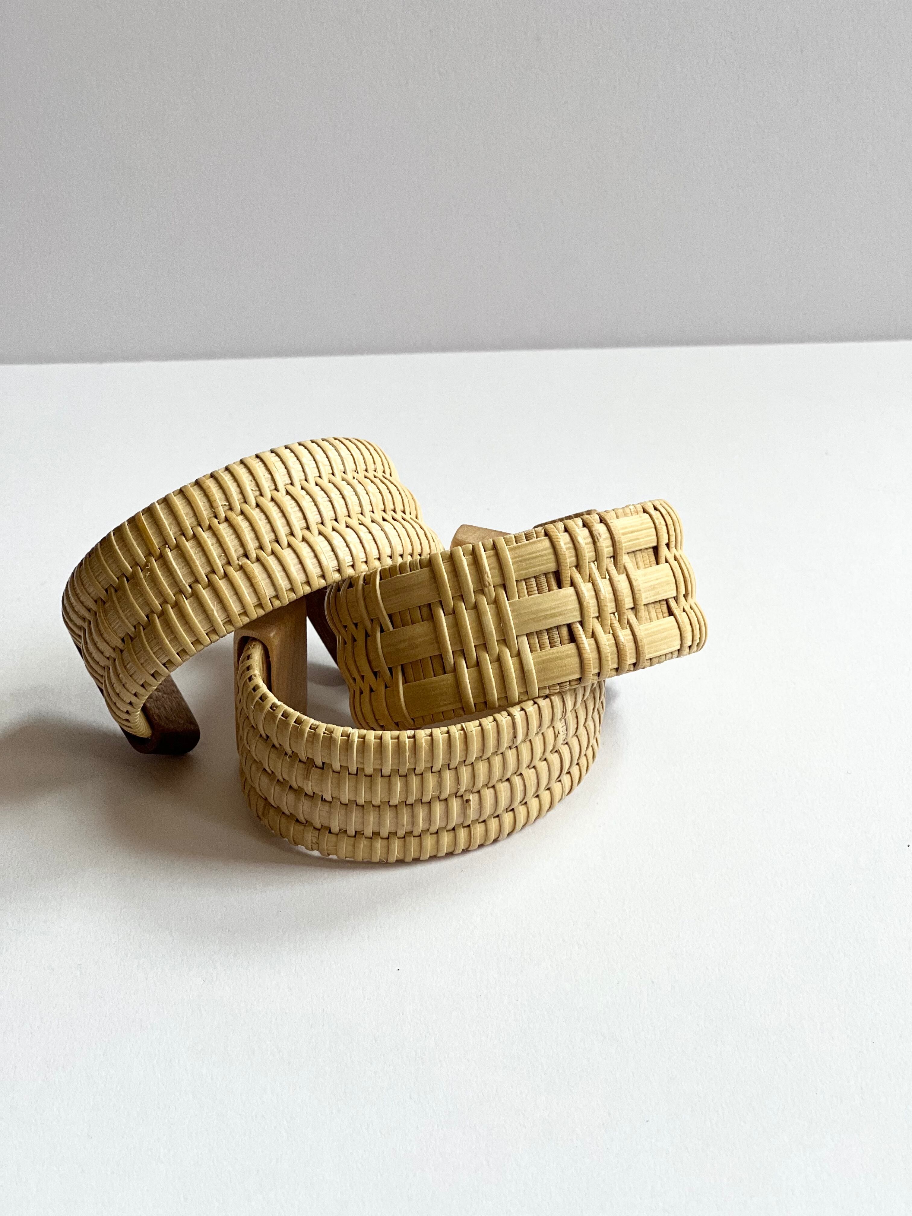 ナンタケットバスケットの技法をもとに籐の編みから木のパーツも全て