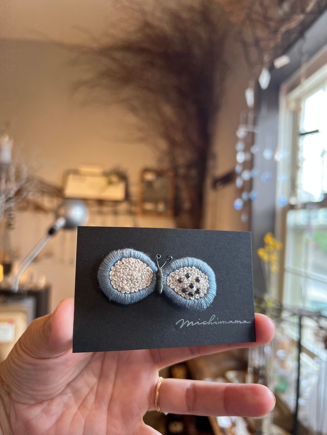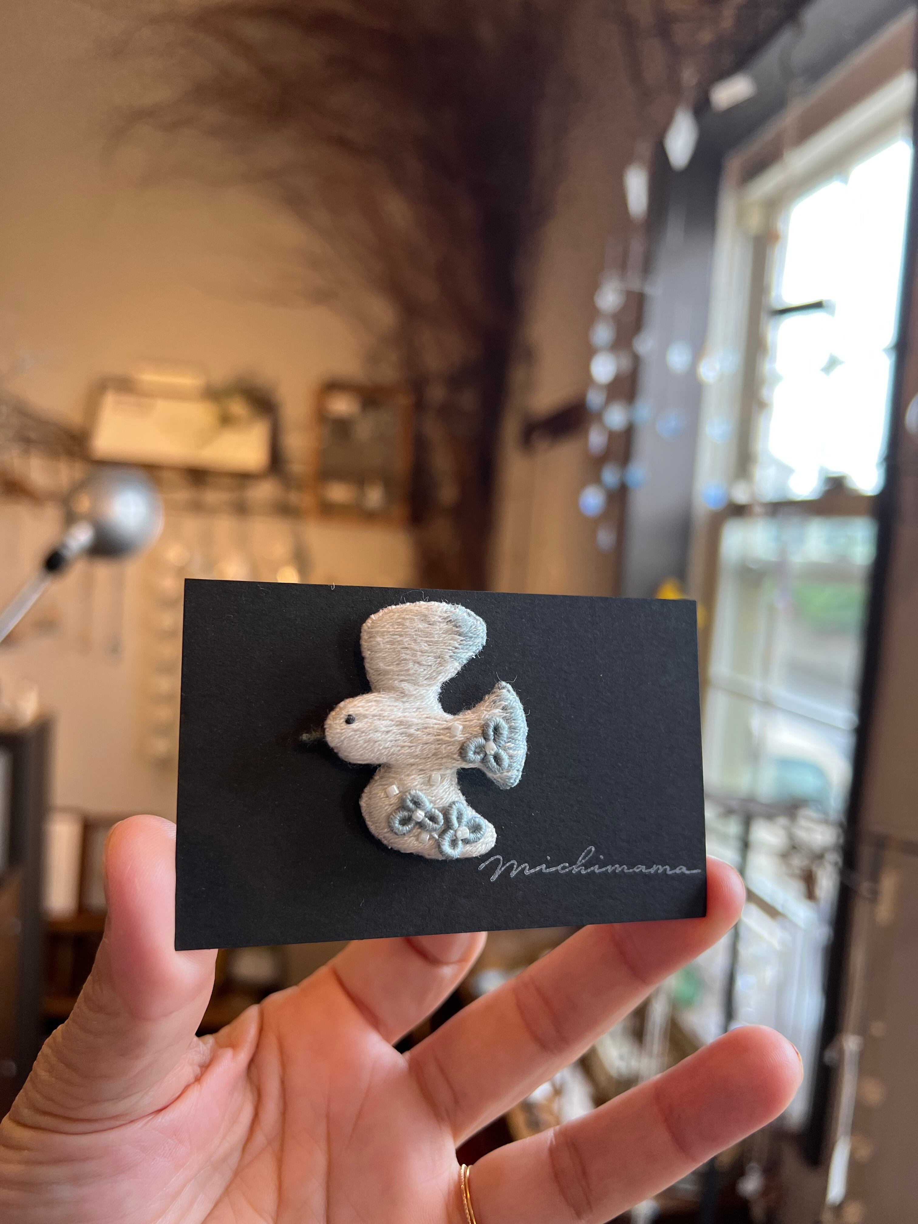 ブランド michimama 手刺繍ブローチ 左上 魚 5cm×2cm 右上 魚 4.5cm×2.2cm 左下 鳥 3.5cm×4cm 右下 ちょうちょ 2.5cm×5.5cm 綺麗な手刺繍とビーズ で作られたブローチです。