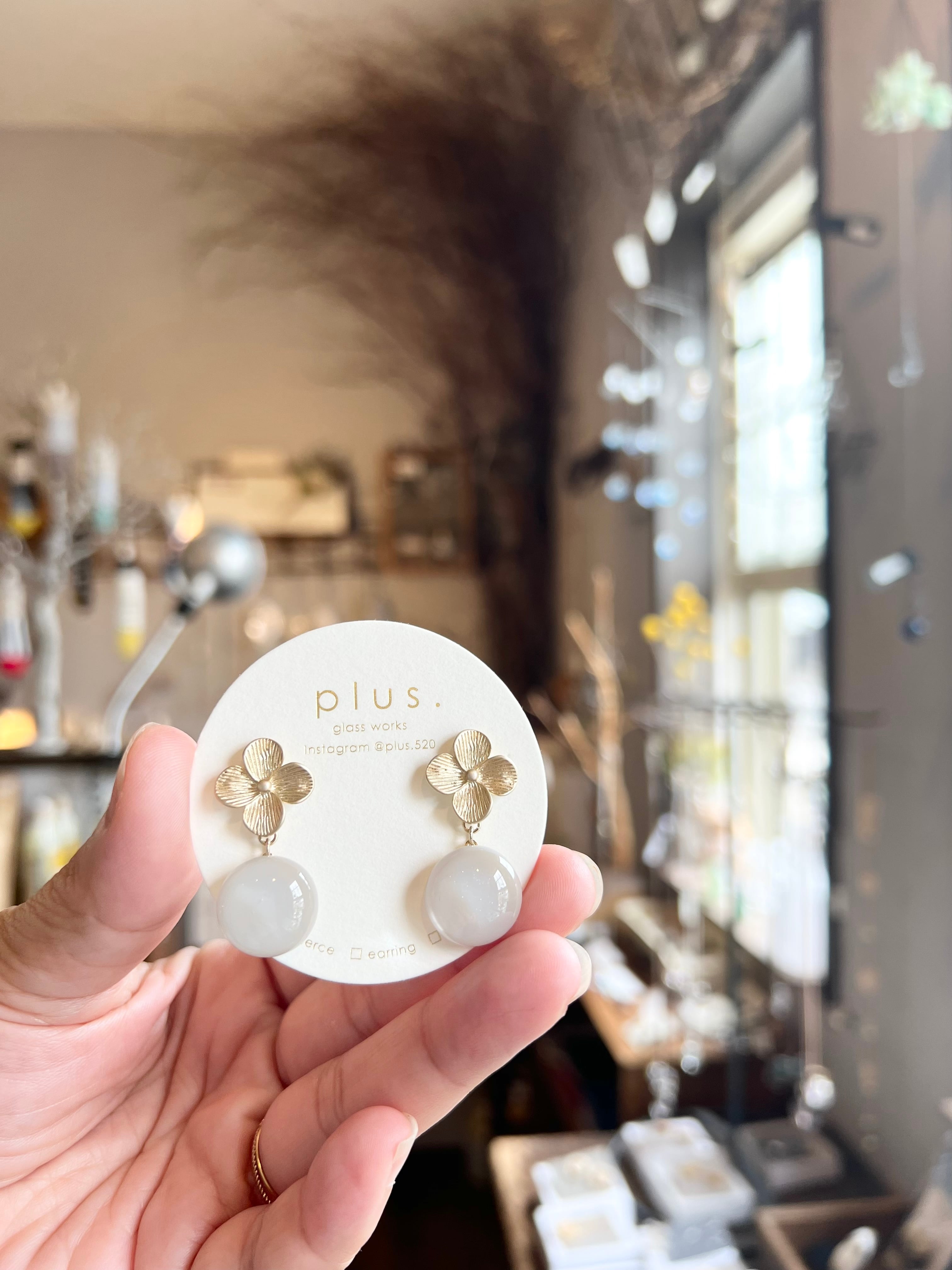 ブランド plus ハンドメイドガラスアクセサリー ガラスのパーツを一粒一粒 作られてます。 ポストピアス 1.5cm×3cm