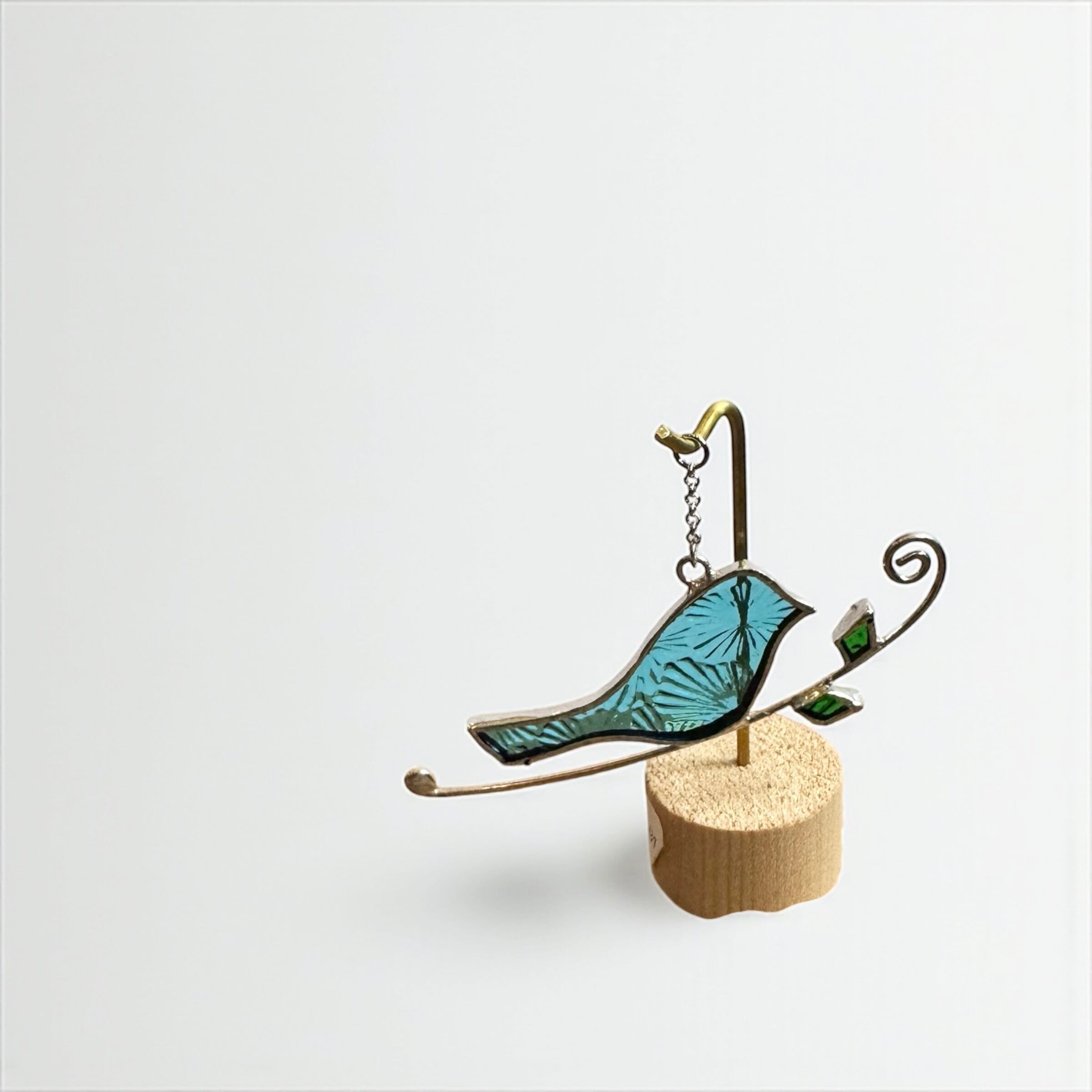 ブランド chise ステンドグラス 木の台 鳥は台から取り外しできます。 木の台 3cm 高さ8cm 青い鳥 8.5cm×3cm