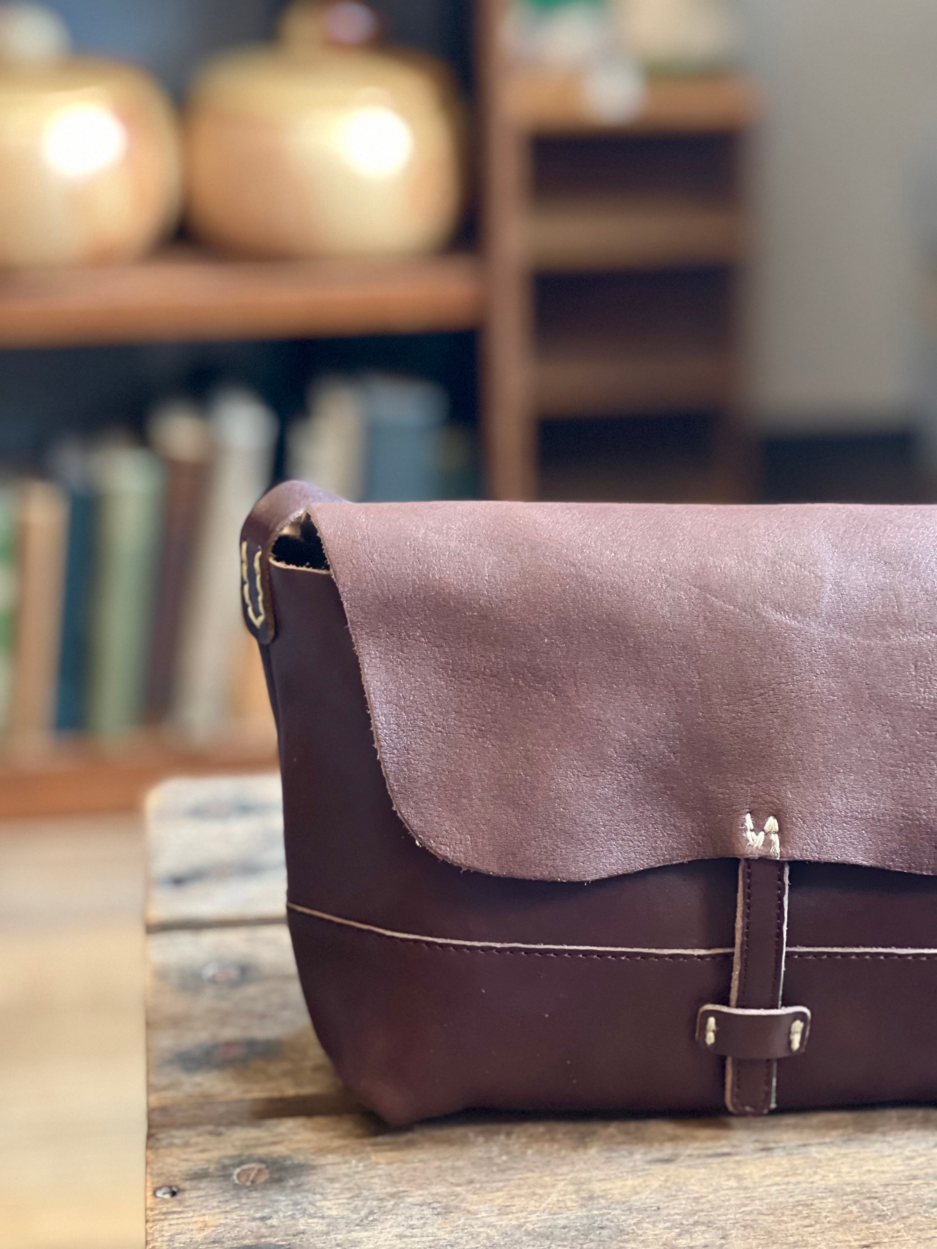 縫製後に、製品洗いをかけています。乾く前にカブセの端をランダムに折っていき、よりカジュアルに仕上げました☆デイリー使いにオススメのバッグです。
