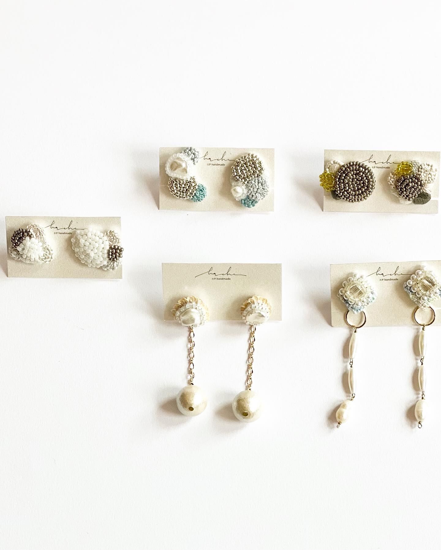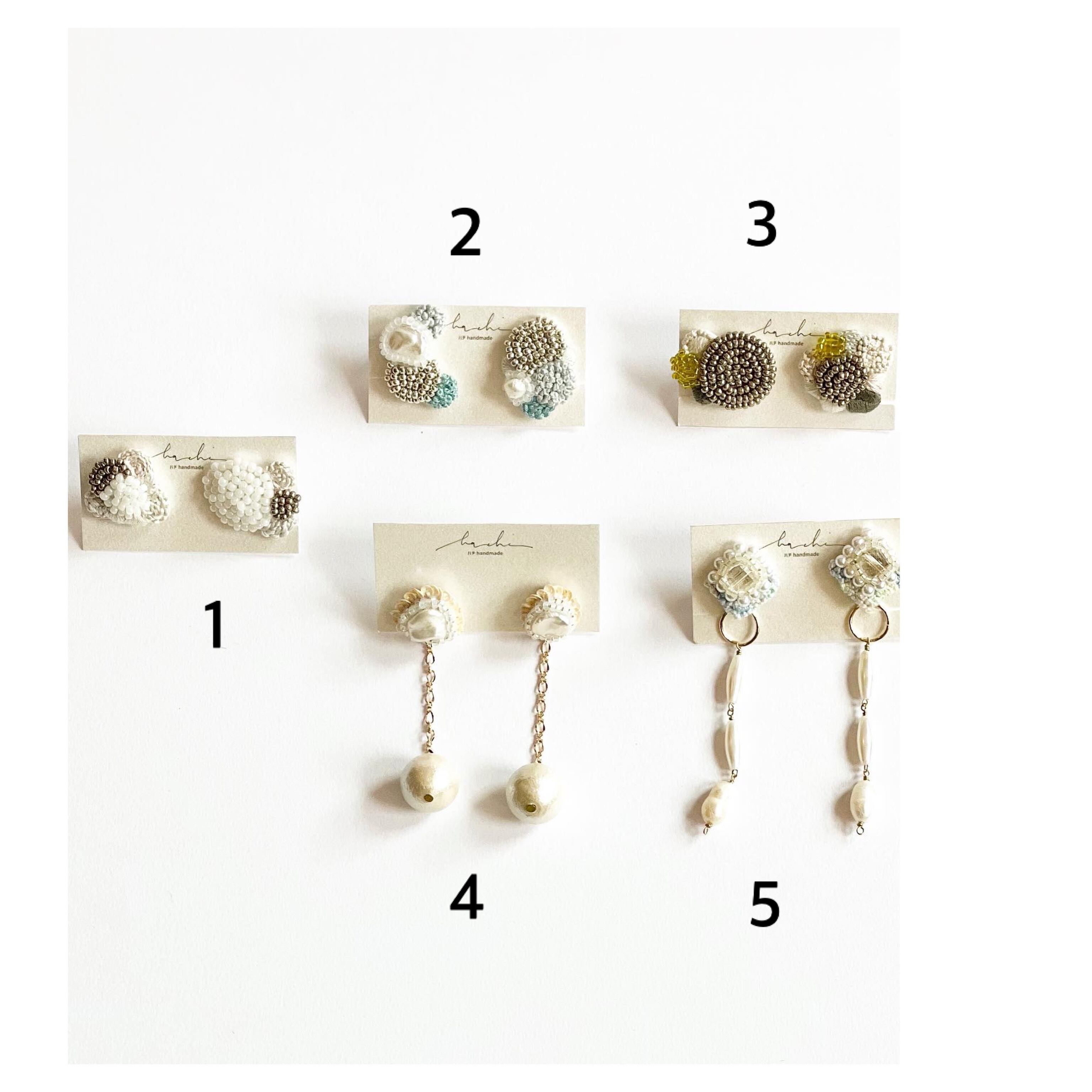 2. 2.5cm 淡水パール ビーズ刺繍 ネジ式イヤリング