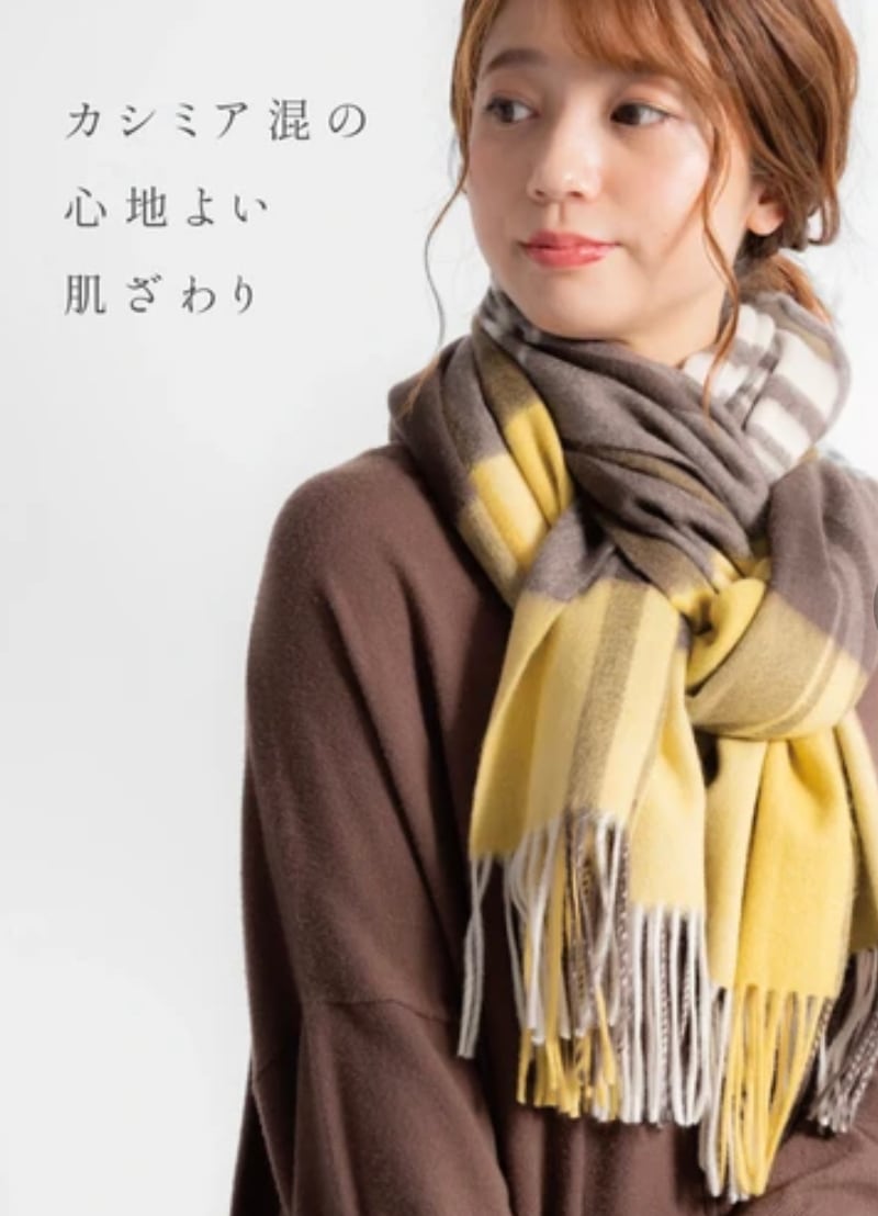 ウールとカシミアをブレンドした暖かく手触りの良いストール。 やわらかな極上の質感とふんわり軽い巻き心地がたまらないおすすめのアイテム。 無地とチェック柄を展開しており、コーディネートに合わせて使いやすいデザインとなっております◎ シンプルなデザインなのでユニセックスでもお使いいただけます。 サイズ 約L:180cm×W:60cm+F:10cm×2 ■素材・成分:ウール 90% カシミア 10%
