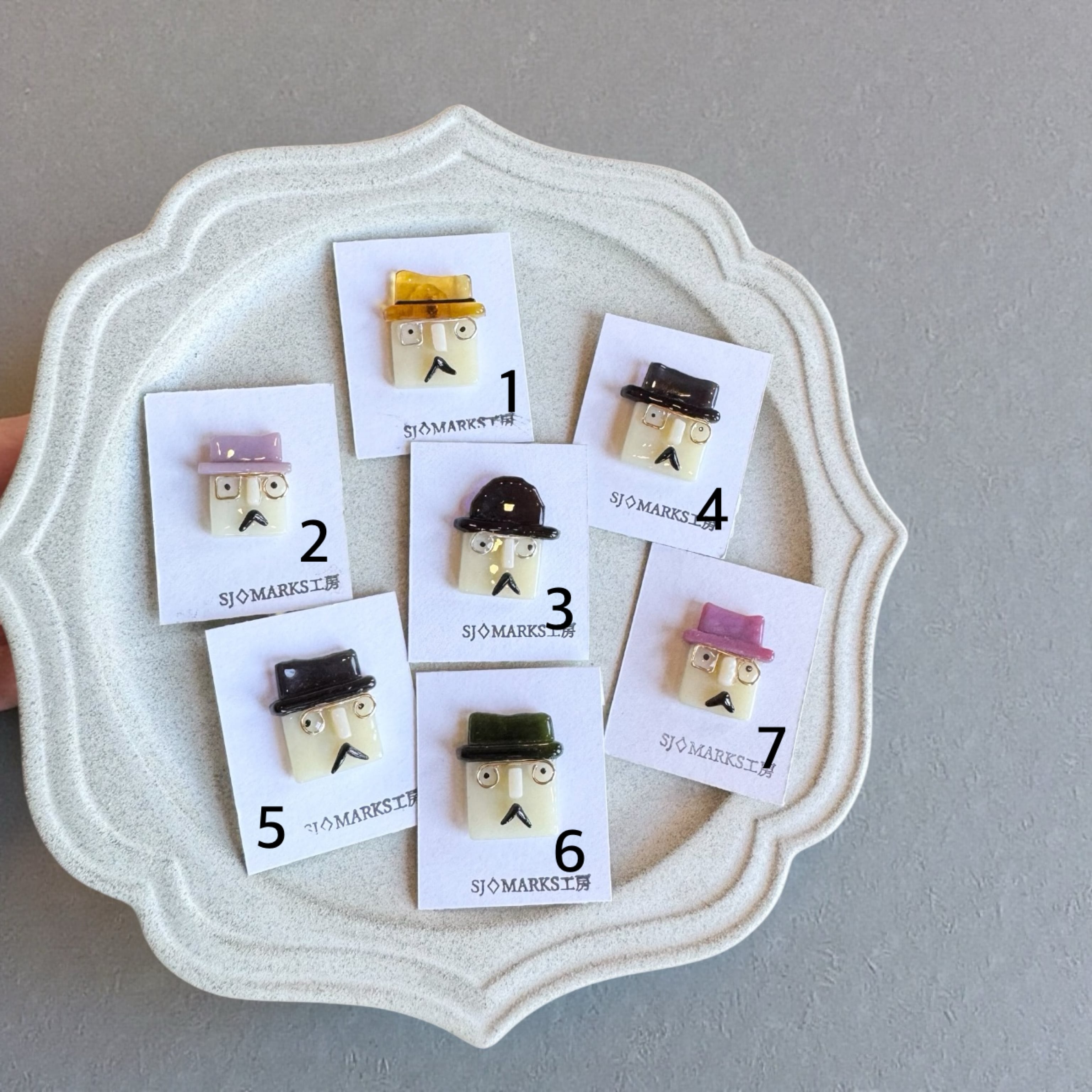 SJ MARKS工房 ガラスブローチ おじさん 大
