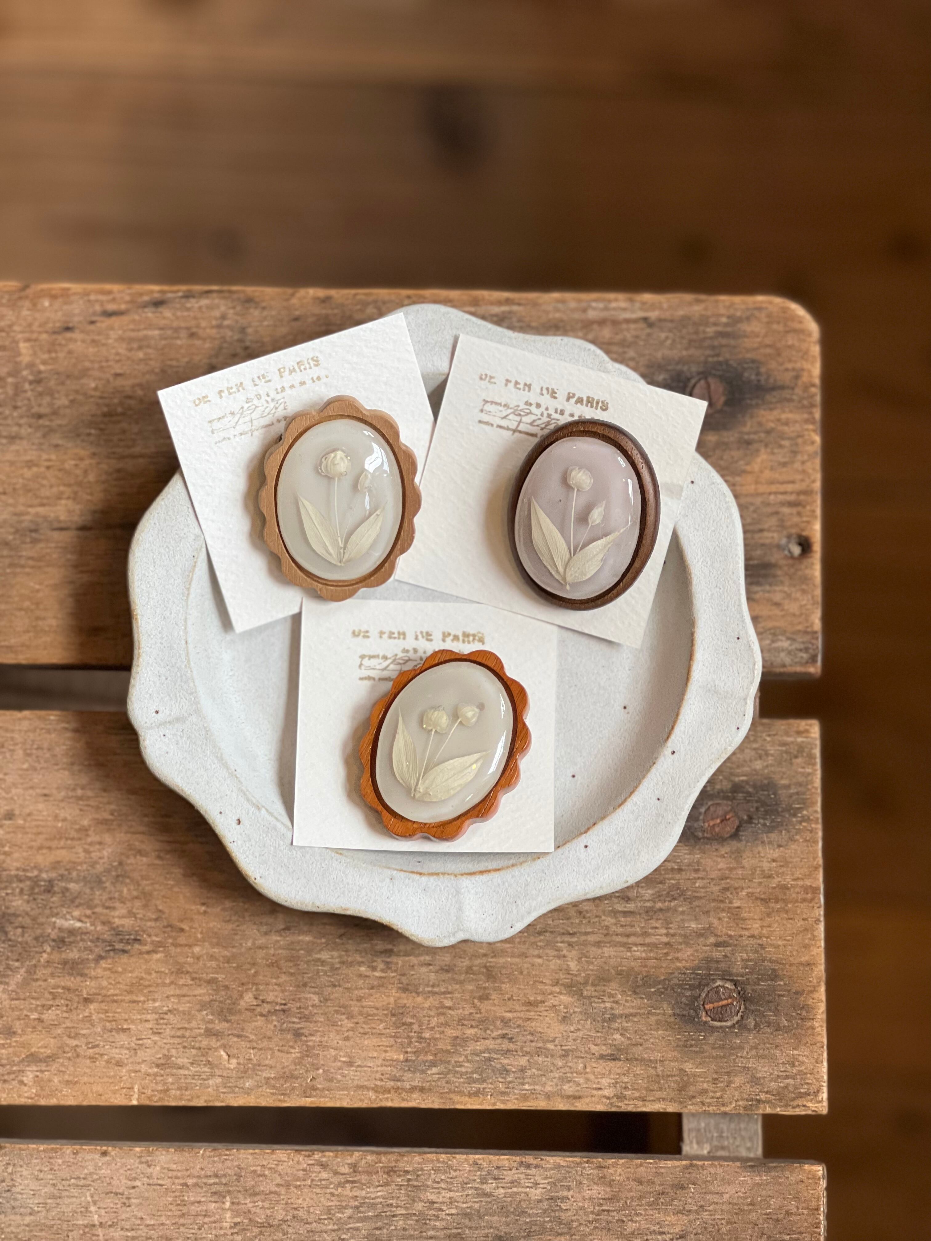 ブランド chieno.sou 樹脂木枠付きブローチ 3.8cm×5cm
