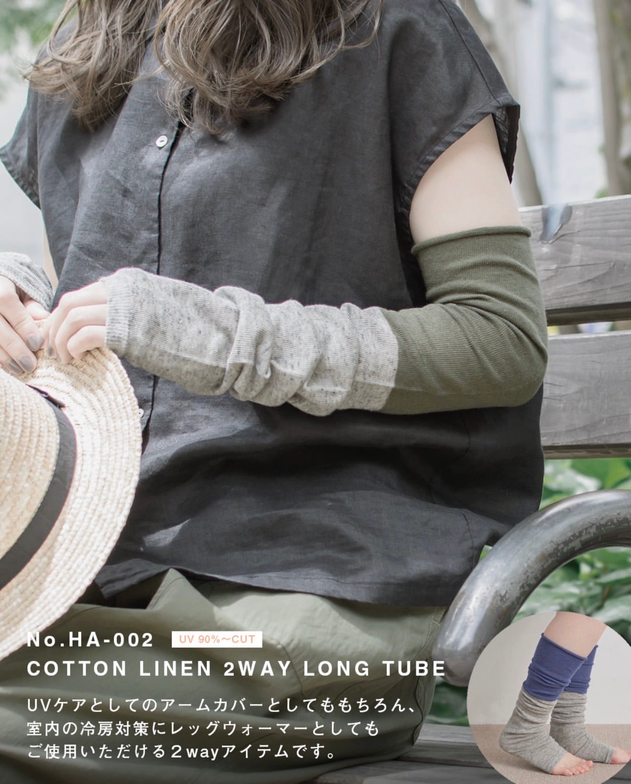 UV90%カットの綿麻素材のロングチューブ。