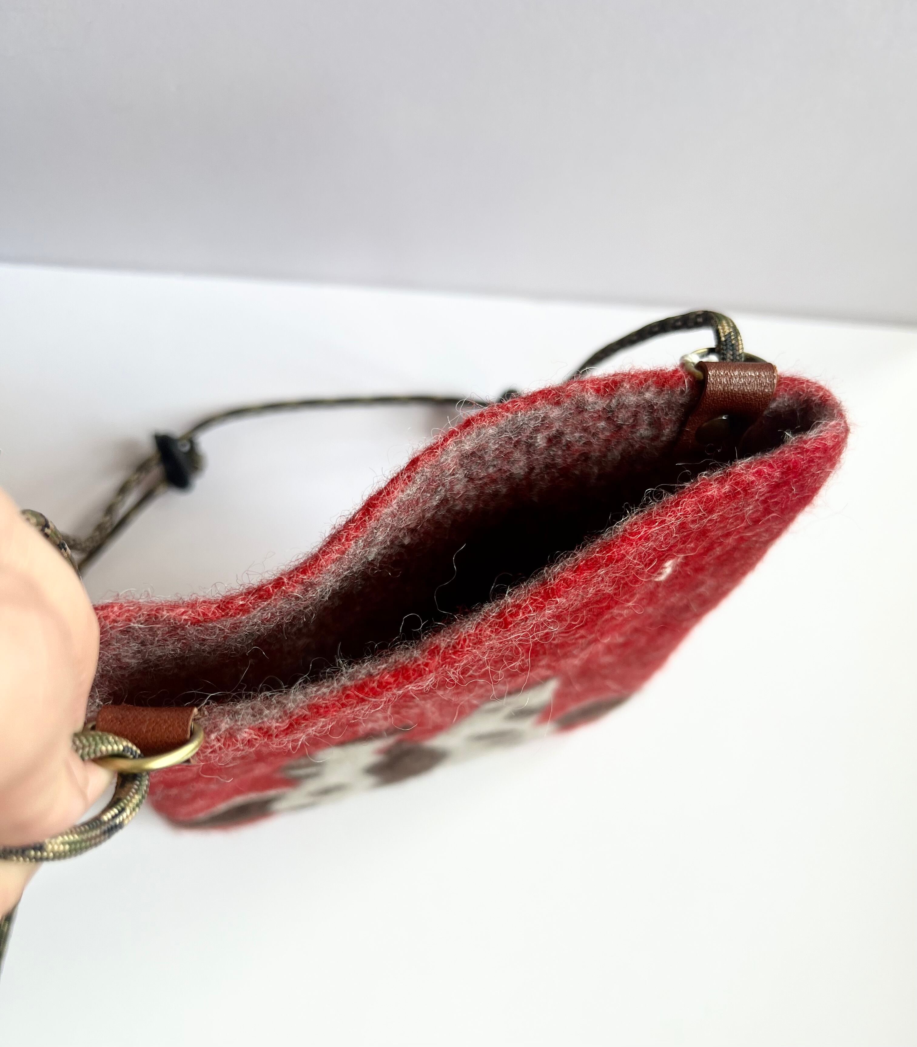 ブランド jolie saison29 羊毛のハンドメイド ショルダーポーチ 携帯と小銭入れが入るサイズです 紐調整可能 最大長さ138cm 横14.5cm 縦21cm 多少の誤差はありますので ご了承ください^ ^ 全面に人の刺繍あり バックには ポケットあり カードは入ります 2枚目画像は別出品している スマホショルダーとの比較になります。 こちらは大きなサイズです