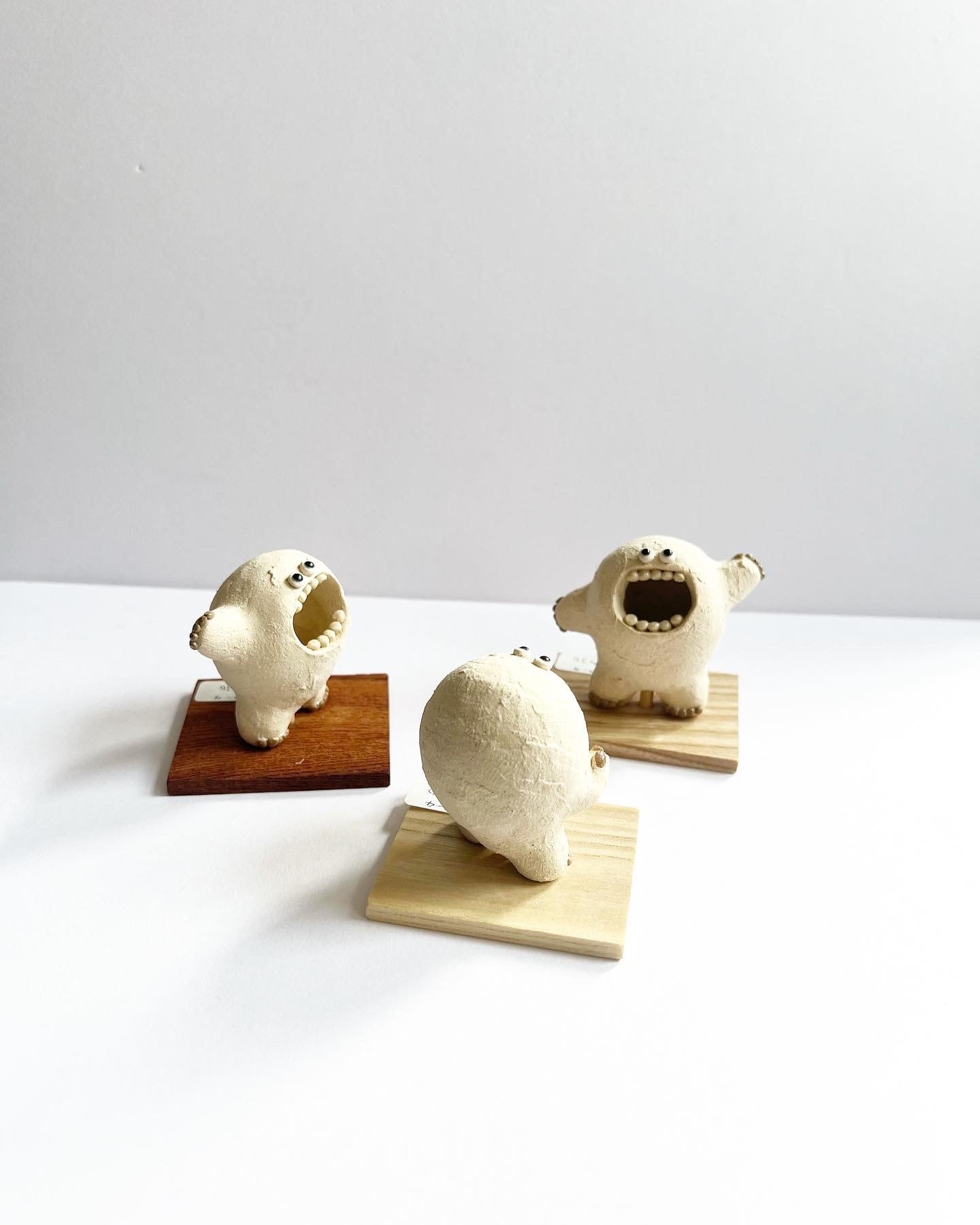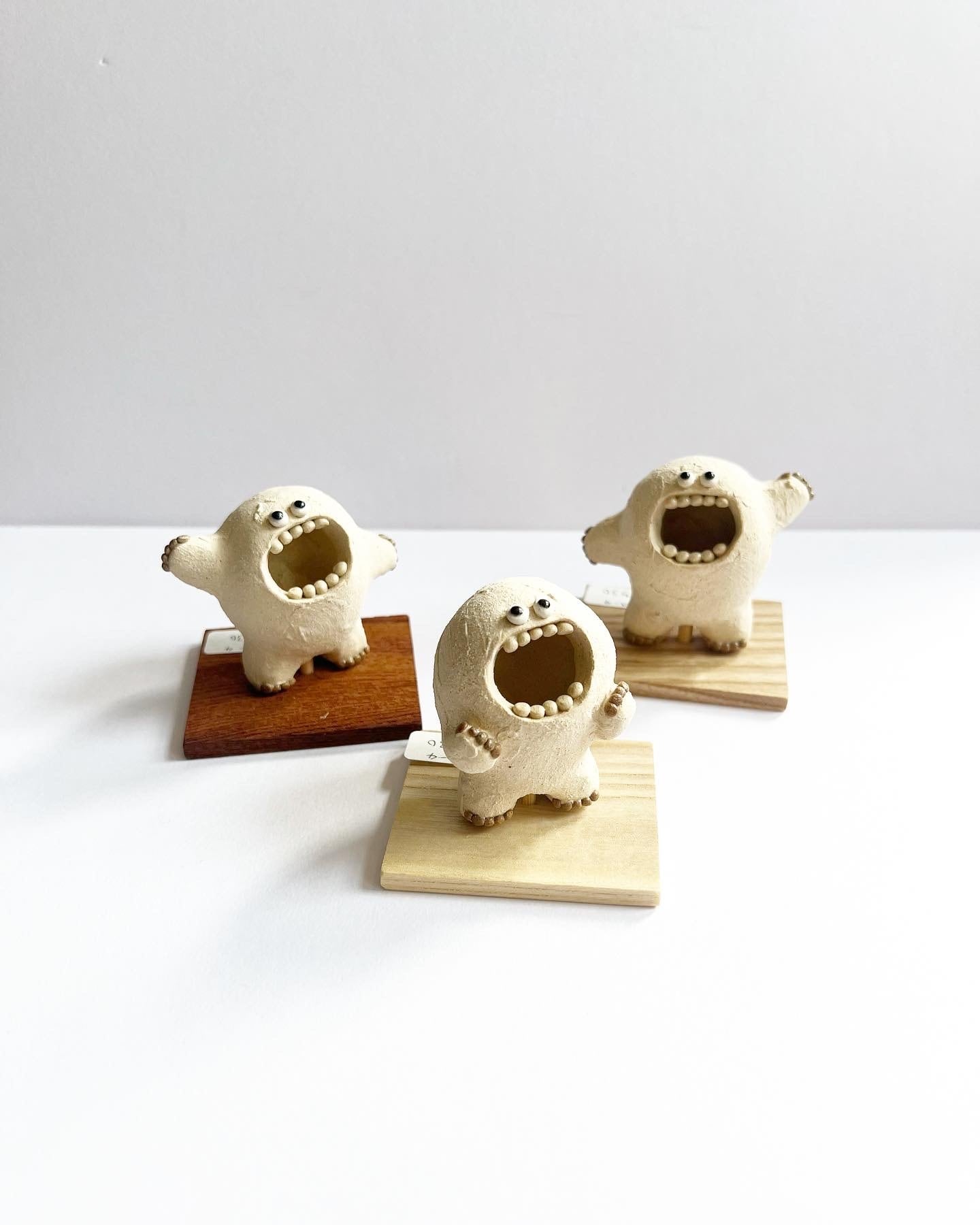ブランド 松本良太 陶器ミニオブジェ 歯シリーズ 横6cm 高さ5cm 奥行き3.5cm 台の色は変わりますのでご了承下さい。 ハンドメイドの為 顔は少しずつ違ってきます 画像とは全く同じものではないのでご了承下さい。 こちらで選んで発送させて頂きます。