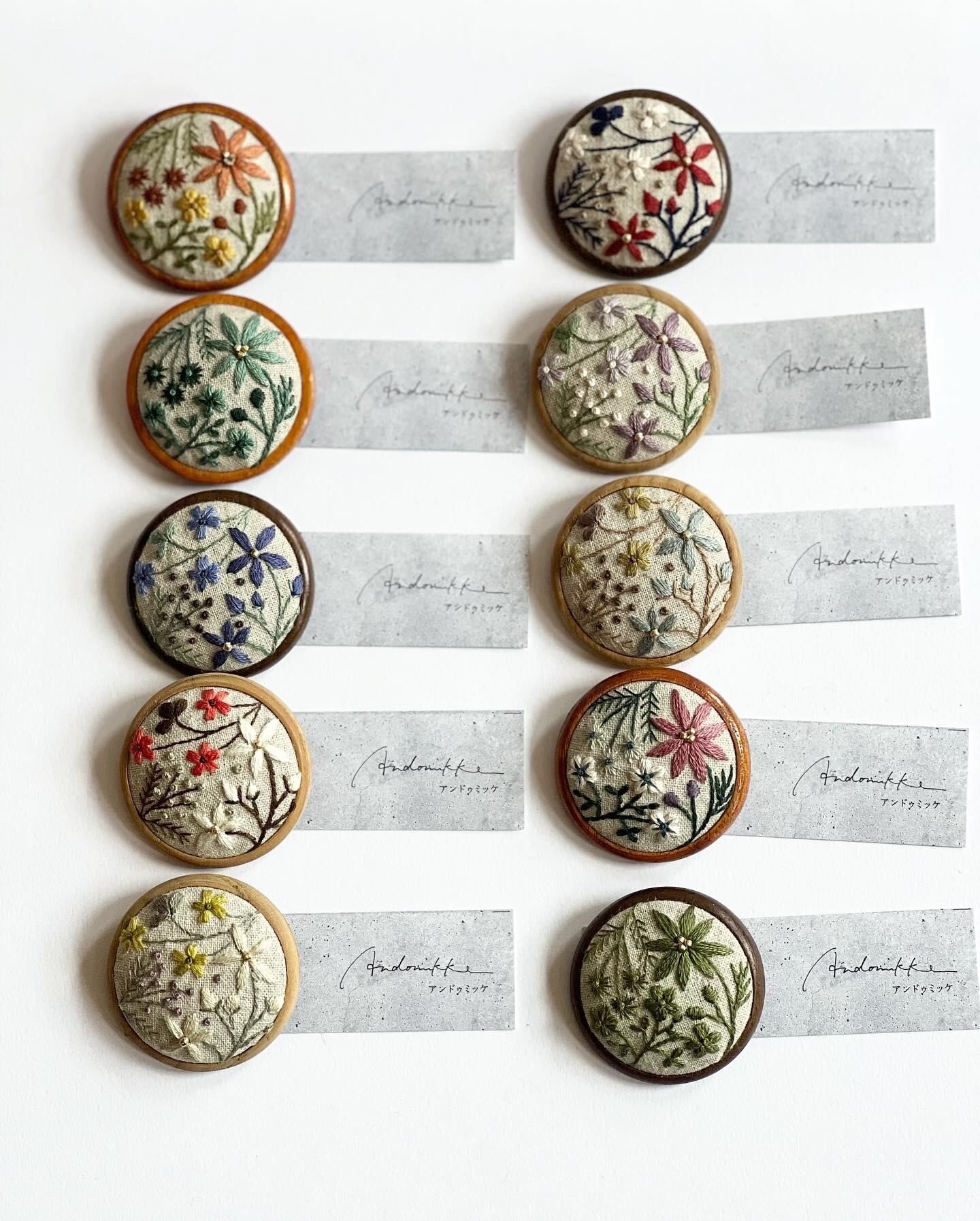 ブランド ANDOMIKE 木枠付き刺繍ブローチ 4.5cm とても綺麗な手刺繍ブローチです。