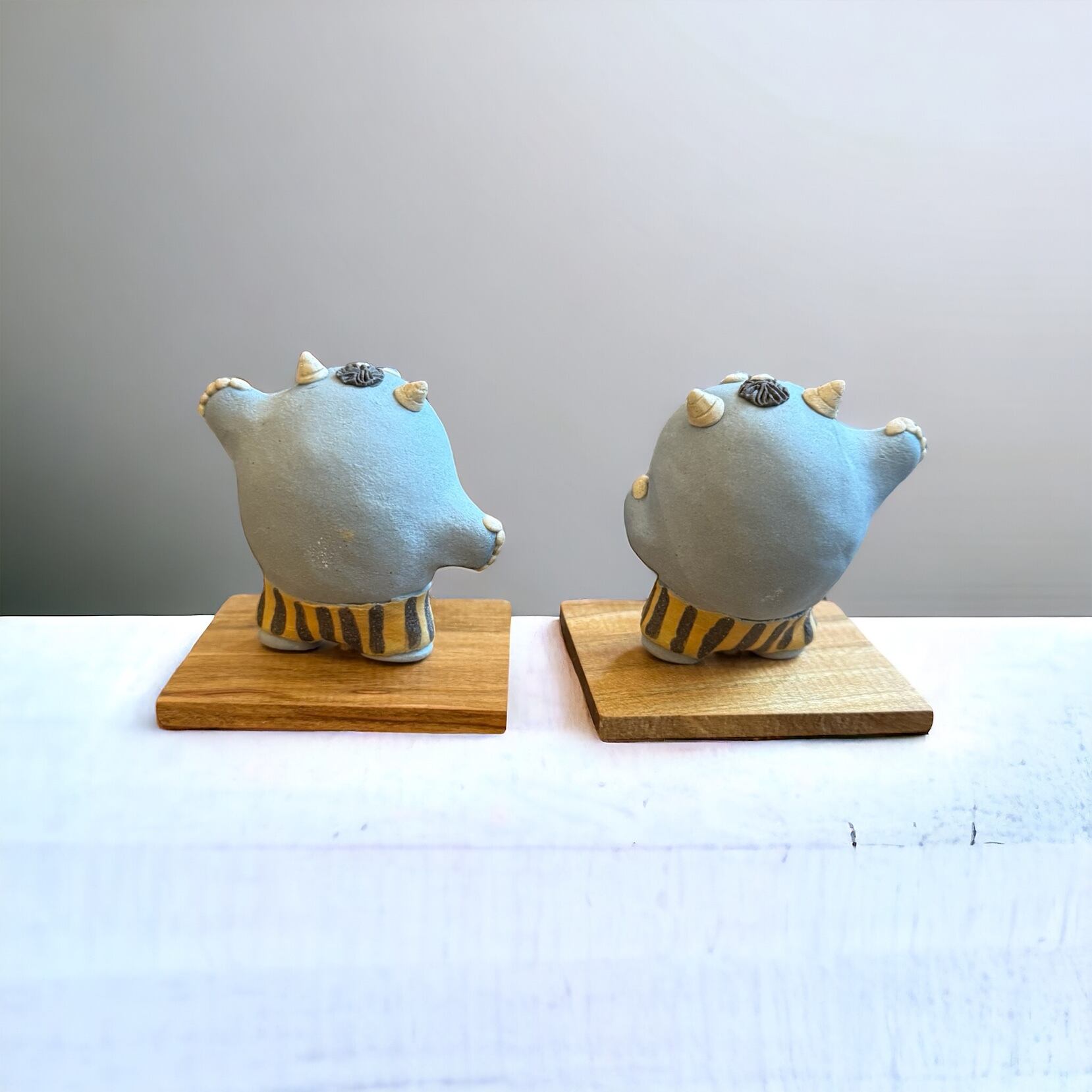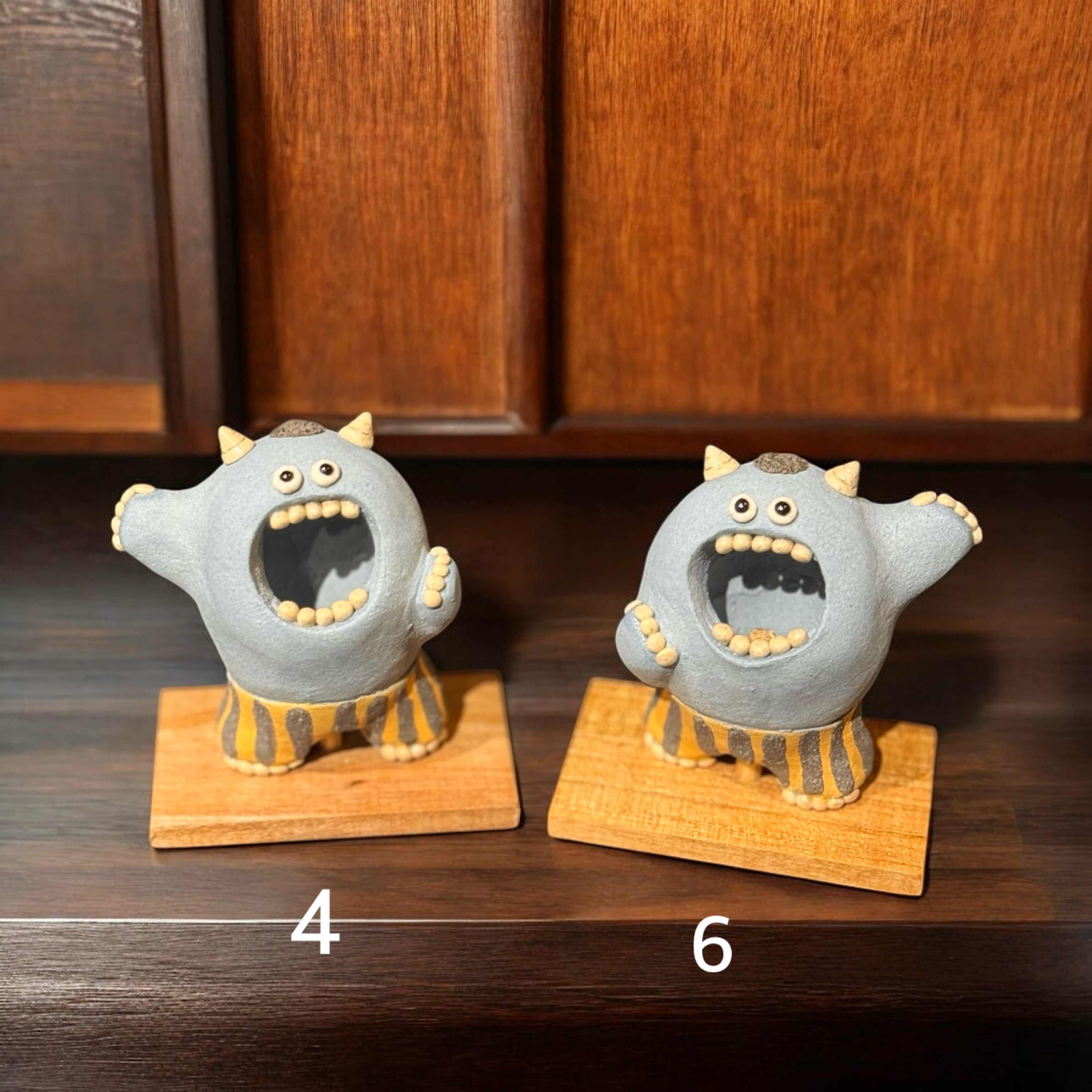 ブランド 松本良太 陶器ミニオブジェ 木の台座付き 台の色は違ったりしますのでご了承下さい。 基本 木の色ですが濃いめだったり薄色の木の時もあります。 横5cm 高さ6cm 奥行き5cm ハンドメイドの為 顔は少しずつ違ってきます 画像とは全く同じものではないのでご了承下さい。 手の形のみ一緒になります。