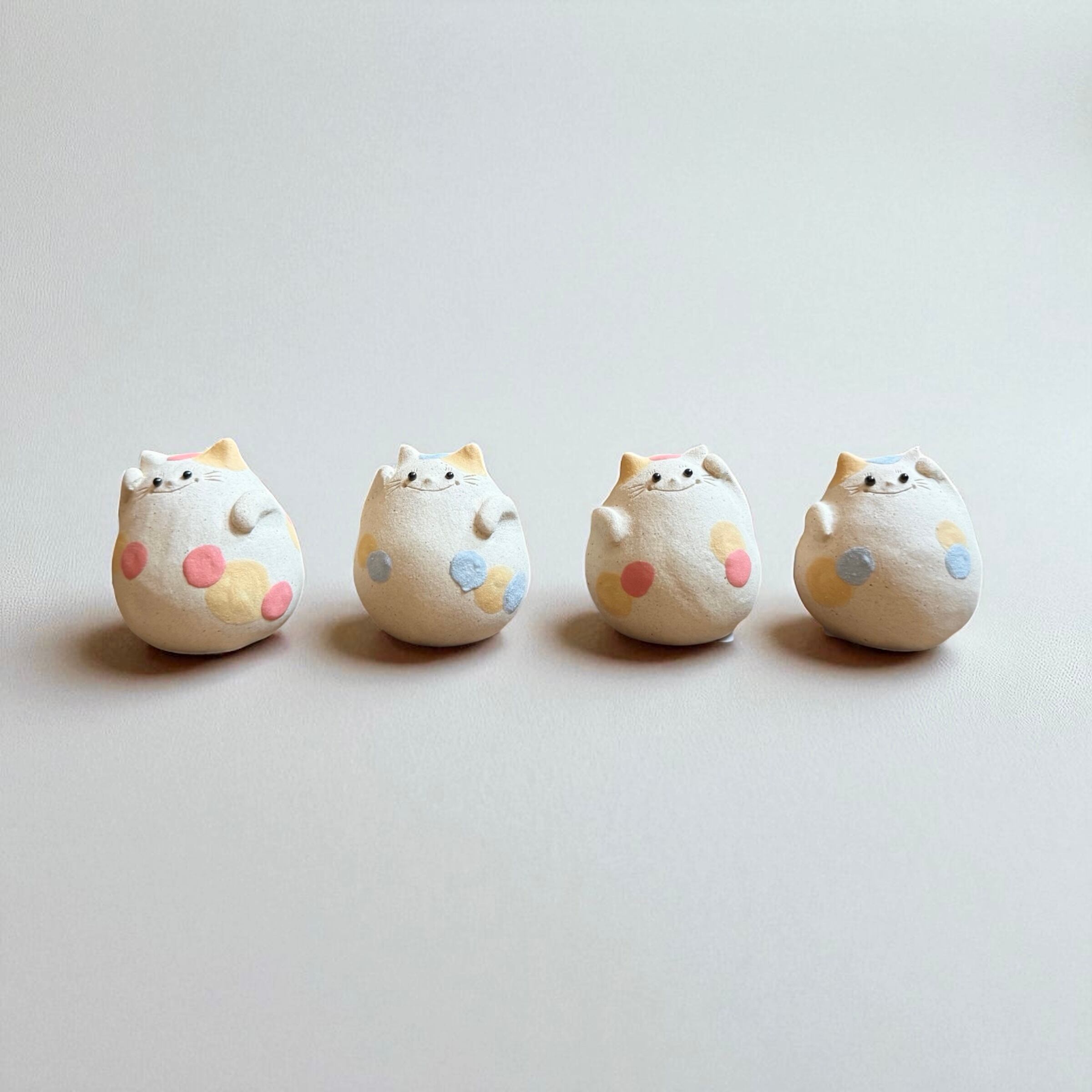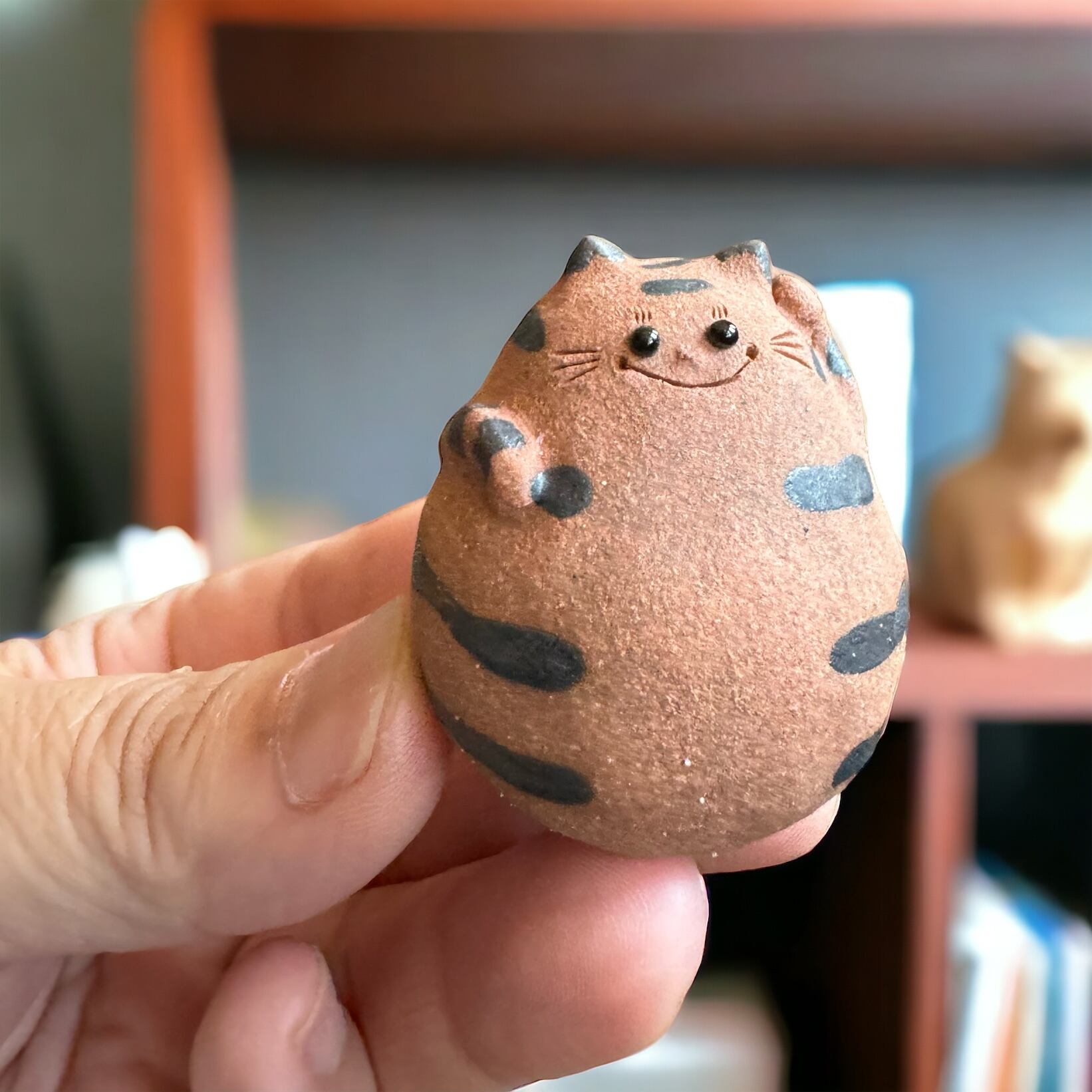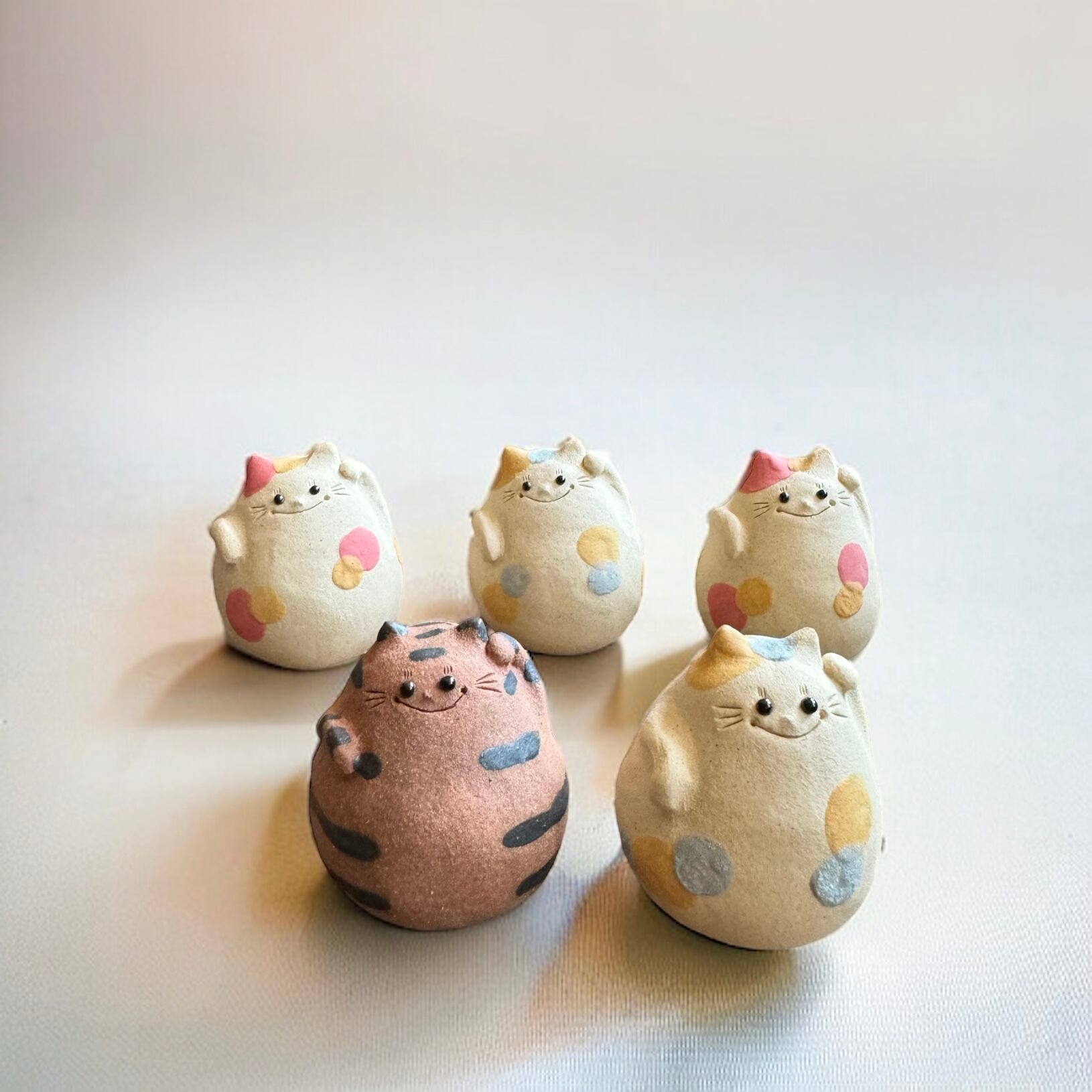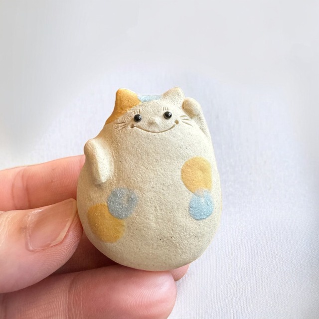 ブランド 松本良太 陶器ミニオブジェ ぶち招き猫 しっぽと手がチャームポイント 横3.5cm 高さ4cm 奥行き4cm