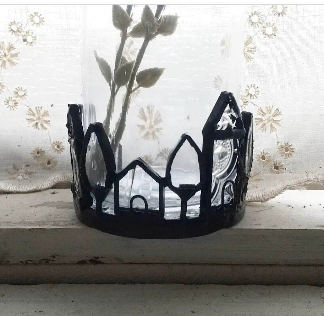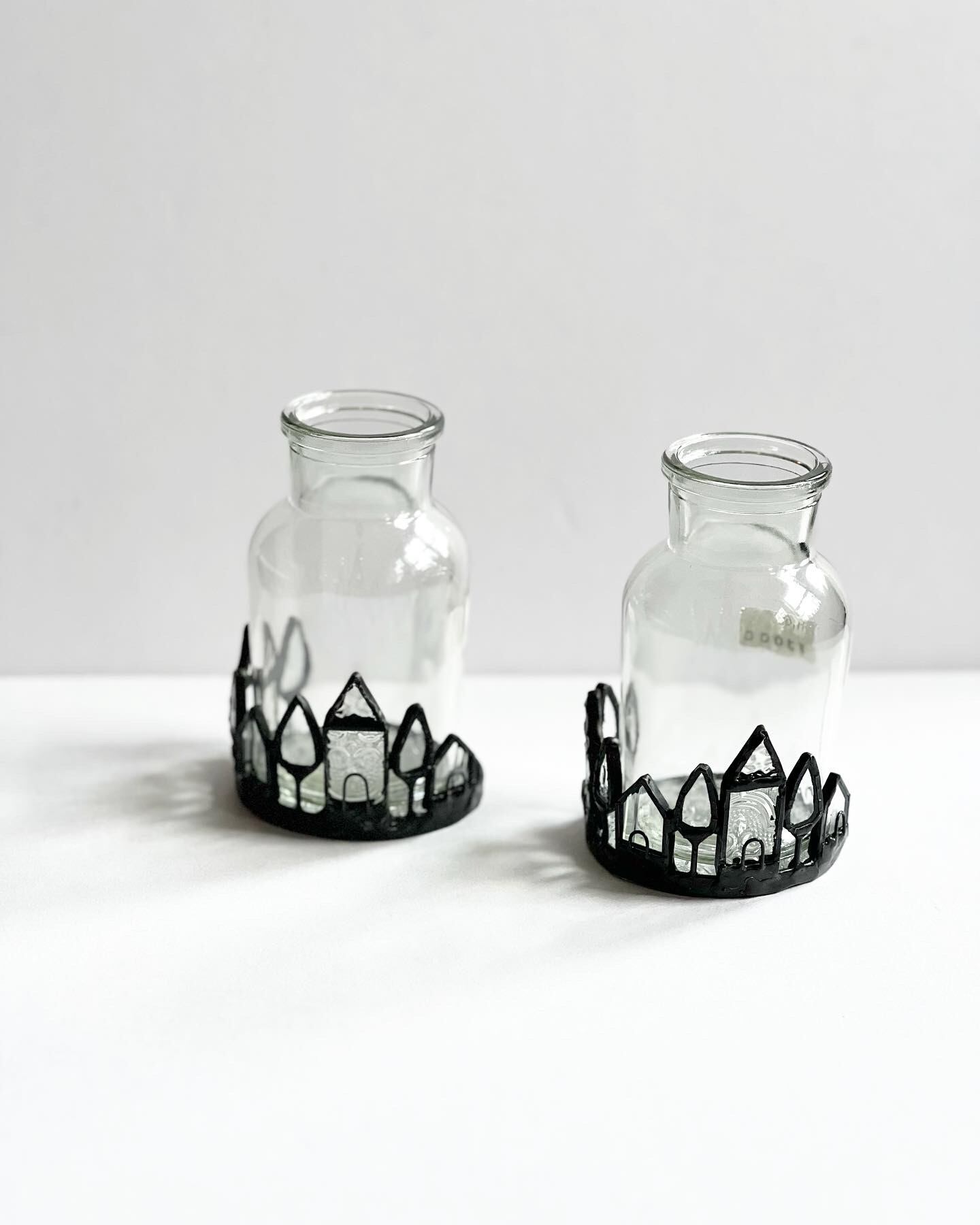 ブランド ガラス雑貨作家 Vetro ステンドグラス ハンドメイド 瓶付き 個体によっては家の並びが違い場合もございます。 こちらで選んで発送させて頂きます 横6cm高さ10.5cm 瓶付きサイズ