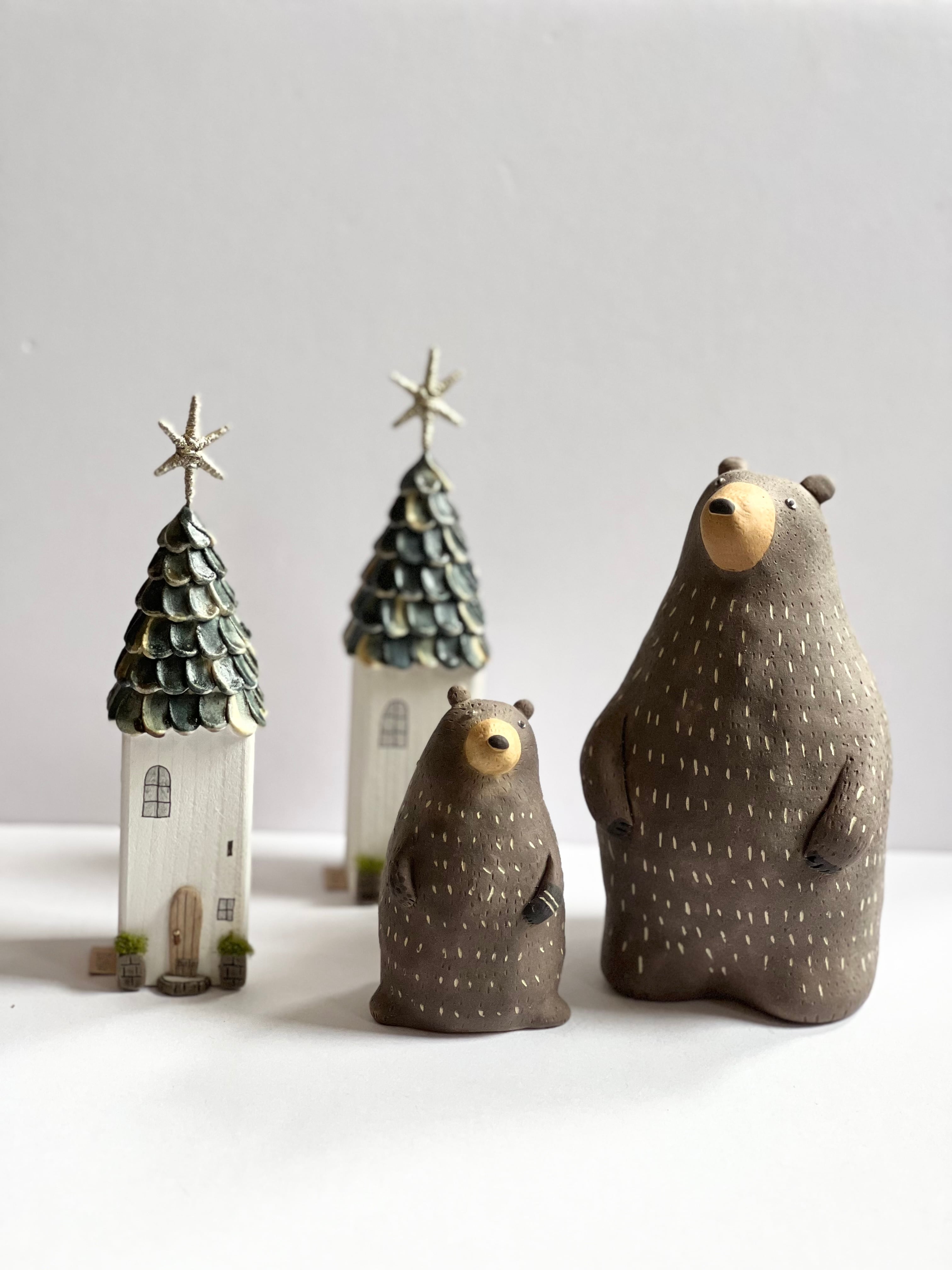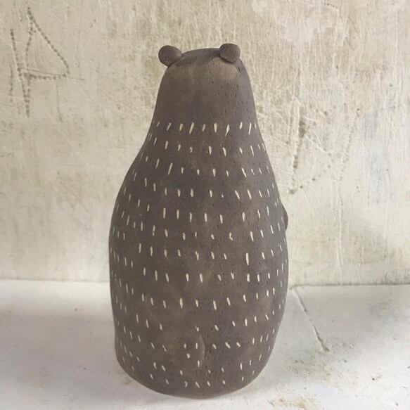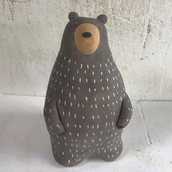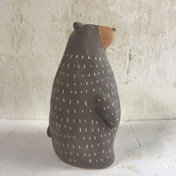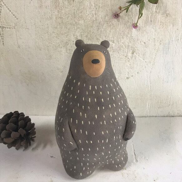 常滑焼 陶器 陶製のくまの置物です。 手作りの為、1点1点 形、色などが画像と多少違いがあります。 高さ 15cm位 右側の大になります。 左は別に出品してます。