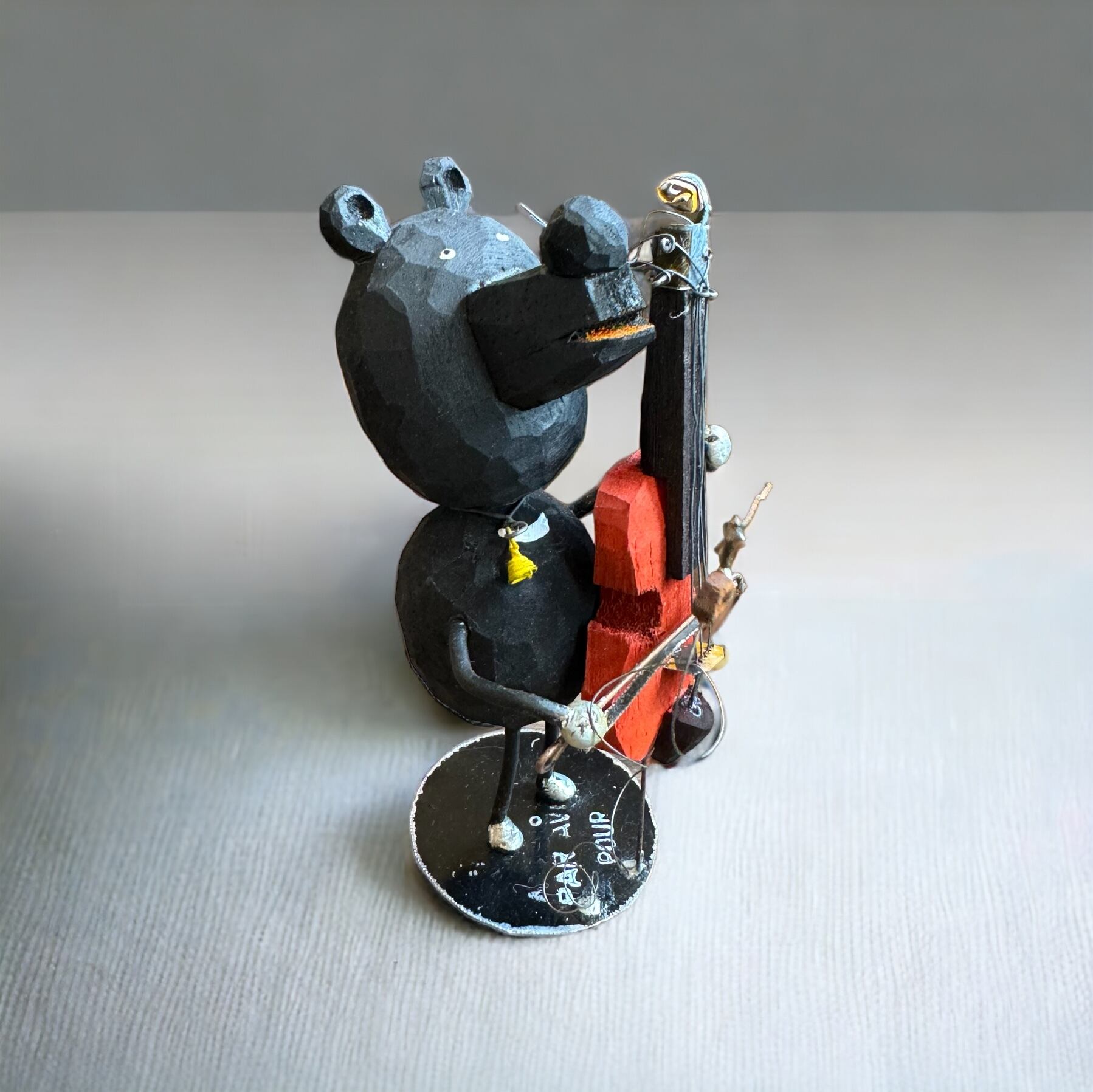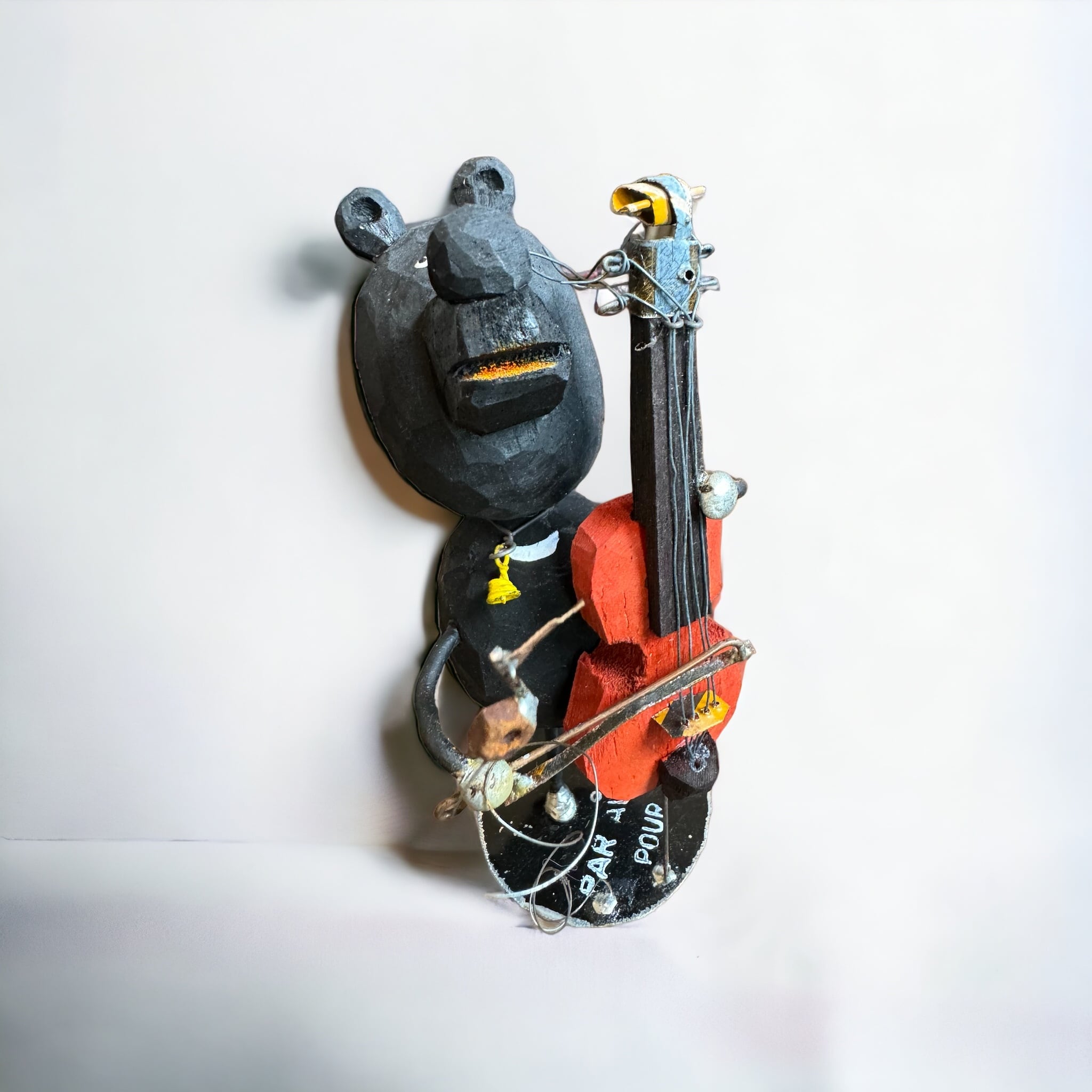 ブランド TALA 手彫り 木彫り 高さ14cm 鉄と木で作られた作品 全て楽器や金属の音符などハンドメイドです。