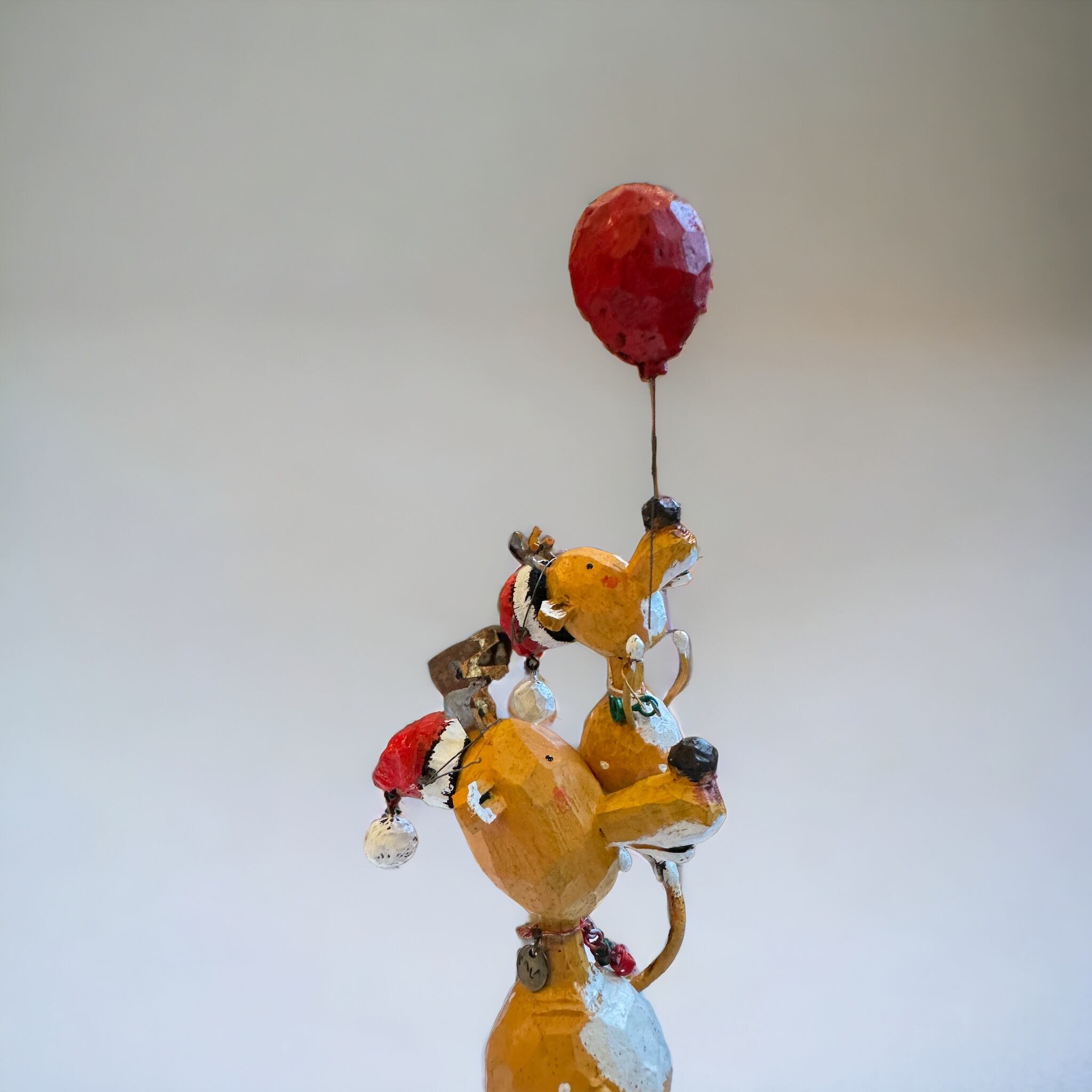 ブランド TALA 手彫り 木彫り 高さ22.5cm 鉄と木で作られた作品 全てハンドメイドです。 帽子は取り外せるのでクリスマスの時だけ 被せてあげても可愛いです。