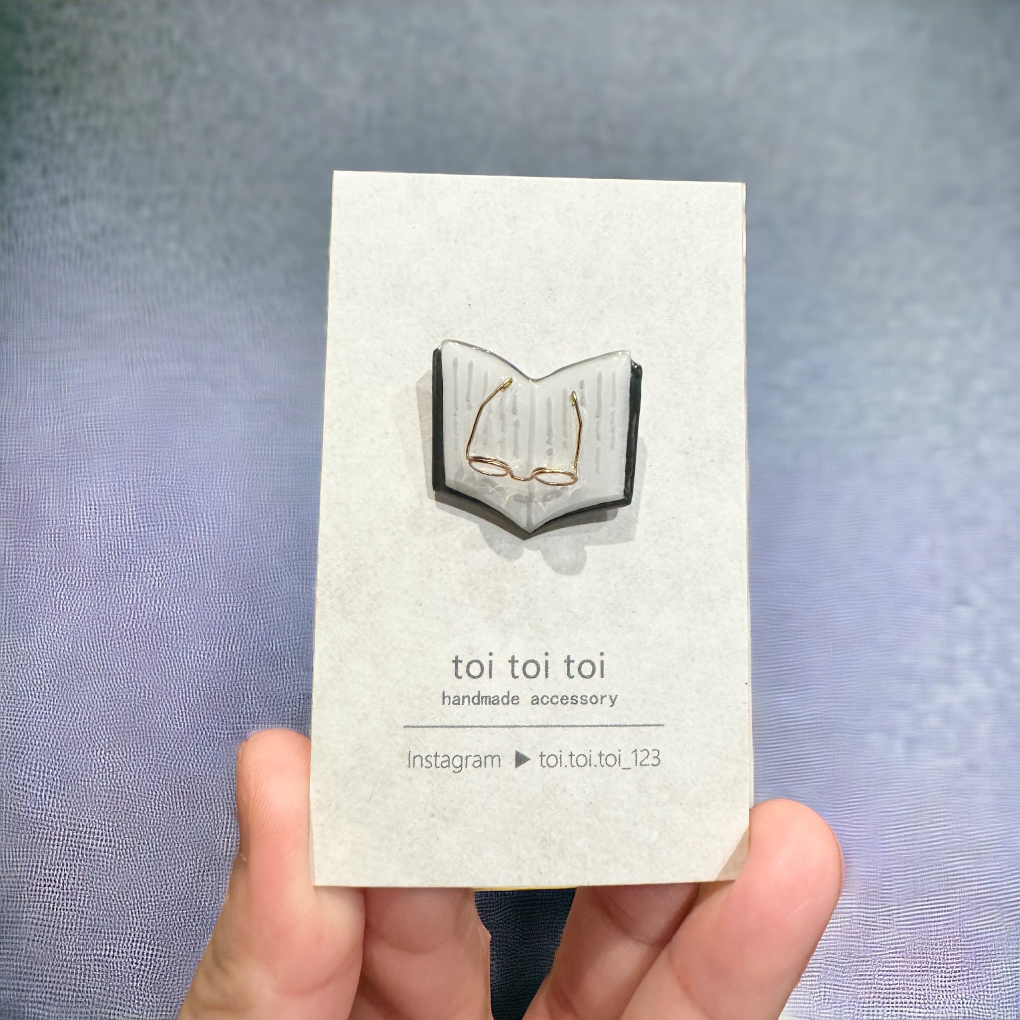 ブランド toi toi toi プラバンブローチ プラバンとは思えない程 とても綺麗に作られてます。 メガネは立体的です。 本とめがね 3cm×2.7cm