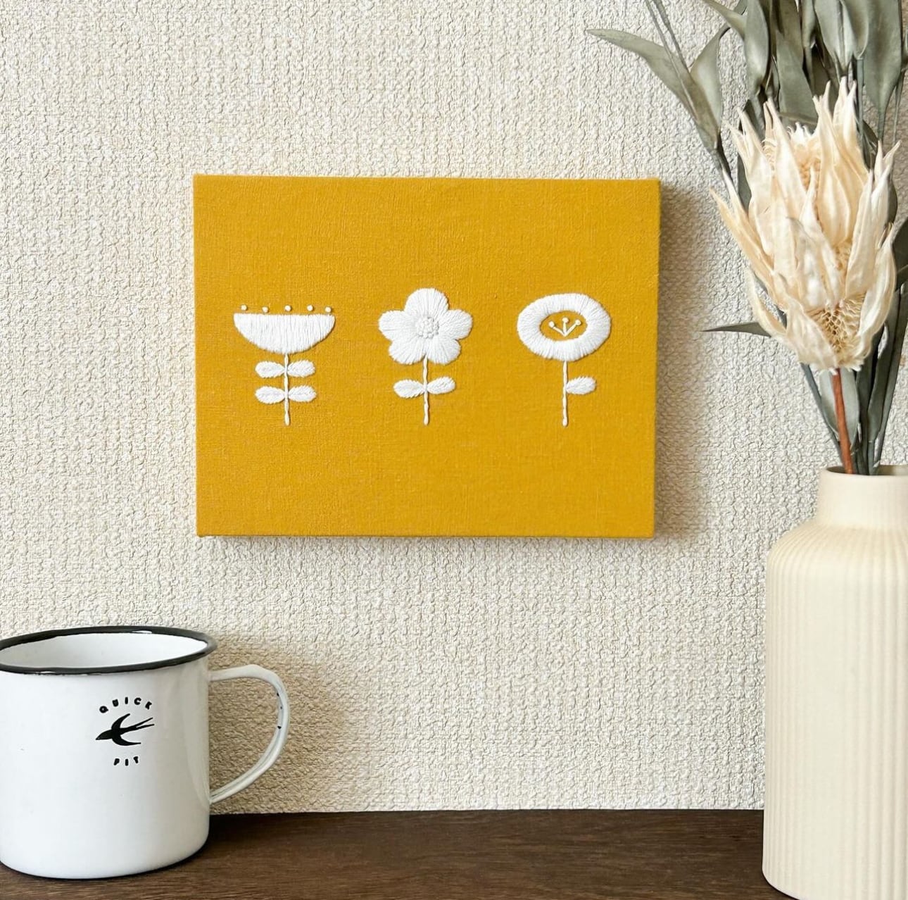 北欧デザインをイメージしたお花の刺繍ファブリックパネルです。
