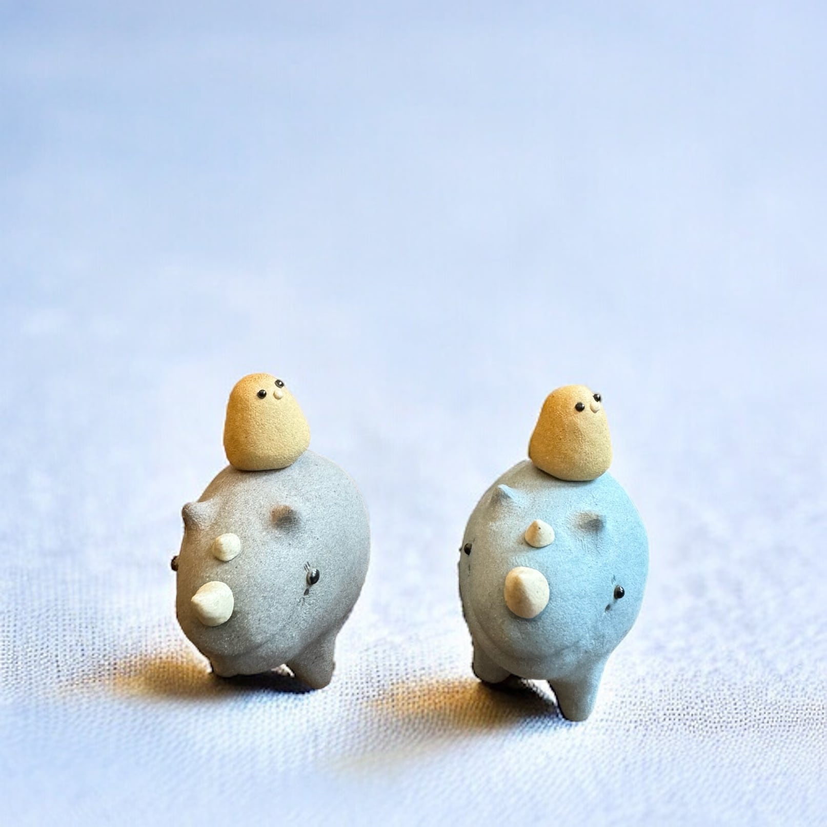 ブランド 松本良太 陶器ミニオブジェ サイとトリ 横5cm 高さ6cm 奥行き3.2cm ハンドメイドの為 顔は少しずつ違ってきます 画像とは全く同じものではないのでご了承下さい。 こちらで選んで発送させて頂きます。 こちらは1枚目 2枚目画像 ライトグレーになります。