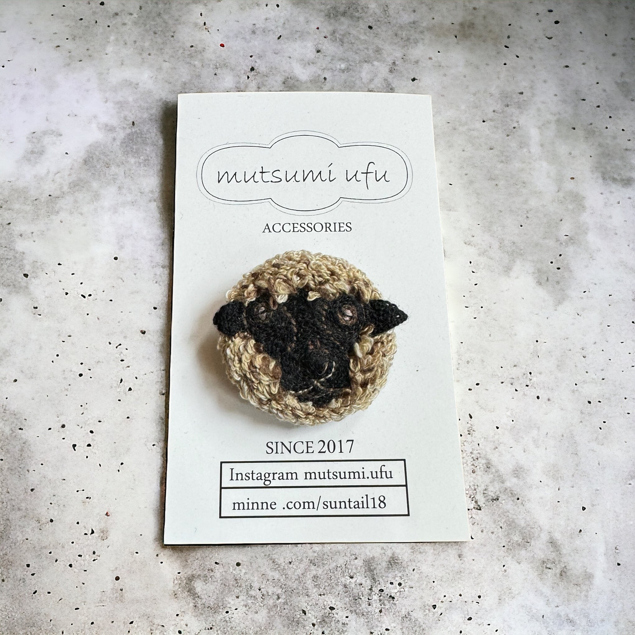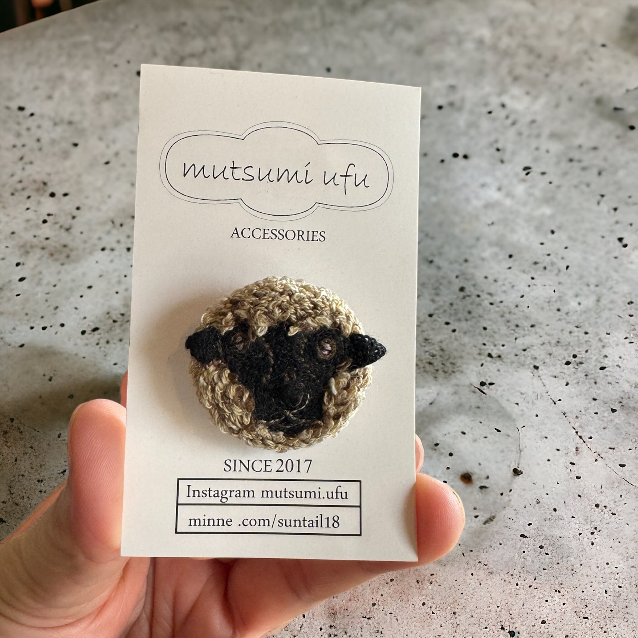 ブランド matsumi ufu 手刺繍ブローチ オリジナル図案 耳部分など立体刺繍になっております 3.3cm