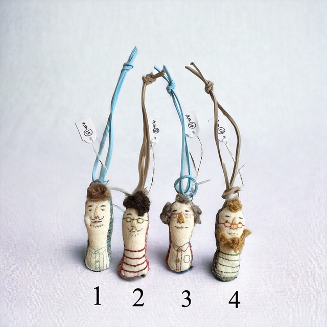 ブランド amikitty 布のキーホルダー 顔は手刺繍 裏は毛糸編み 髪も毛糸になります 長さ約7.5cm 紐含む約20cm