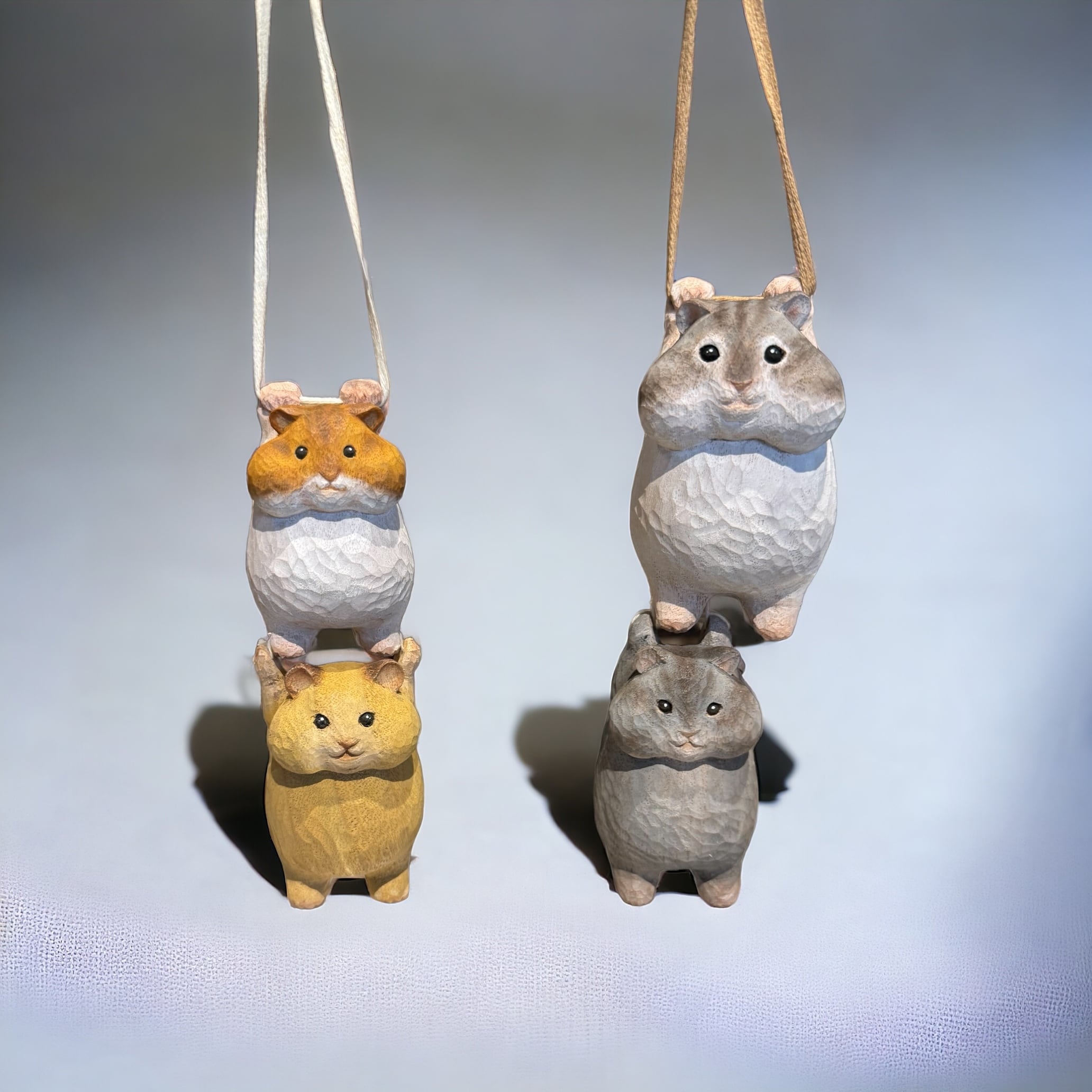 ブランド morimocou 手彫り 連結ハムスター 表情がとても可愛いです^ ^ 小さな手も可愛いです 足の部分で繋がってます リアルに作られてます 紐でぶら下げて飾れます グレー 5cm×15cm 茶 4cm×12cm