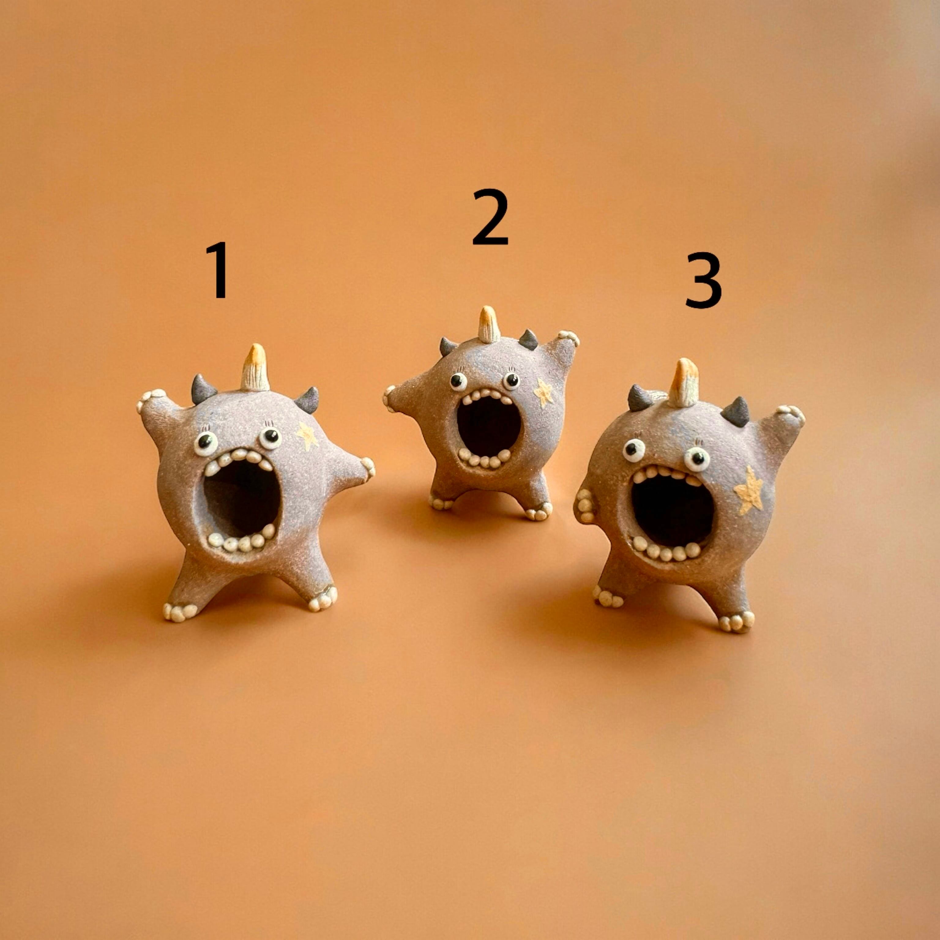 ブランド 松本良太 陶器ミニオブジェ ゼッキョーくん 目元にスターあり モヒカン 薄い茶 横5cm 高さ5cm 奥行き4.5cm ハンドメイドの為 顔は少しずつ違ってきます 画像とは全く同じものではないのでご了承下さい。 こちらで選んで発送させて頂きます。