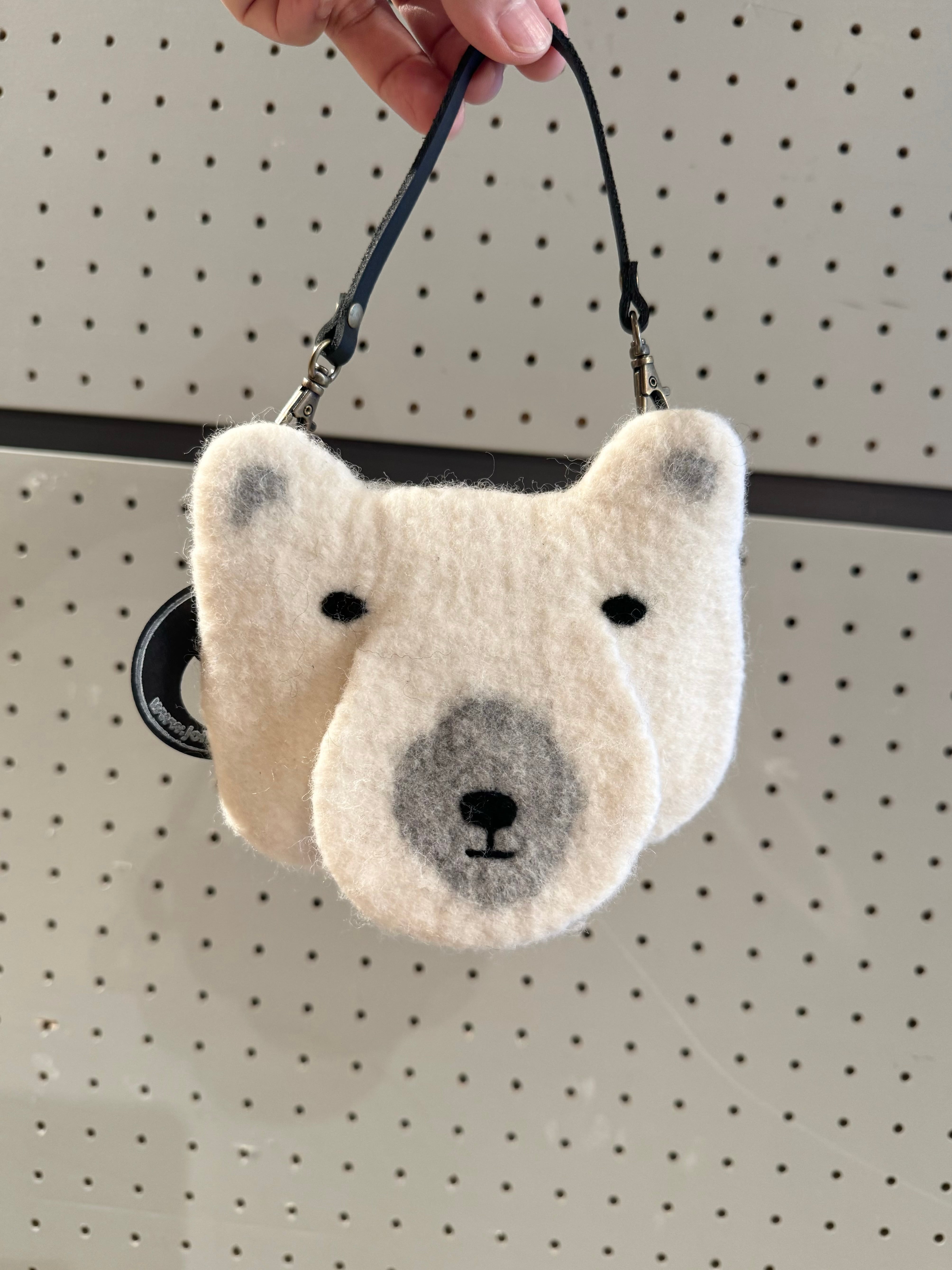 ブランド jolie saison29 羊毛 ハンドメイド 手持ちは取り外し可能な革 バックにもかけれます 鼻をあげるとティッシュが取り出せます。 小さなお子様がいる場合は バックにかけて すぐ出せるので重宝します。 14cm×13cm 1枚目画像になります。