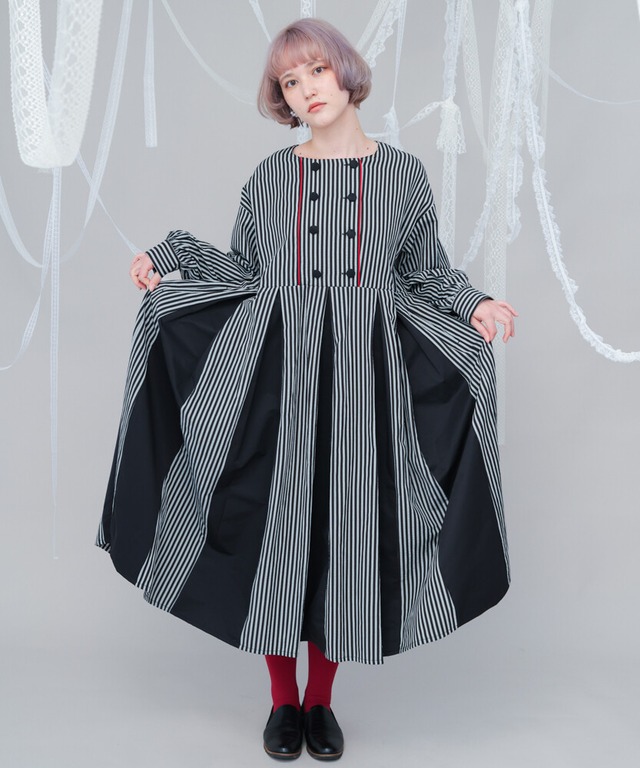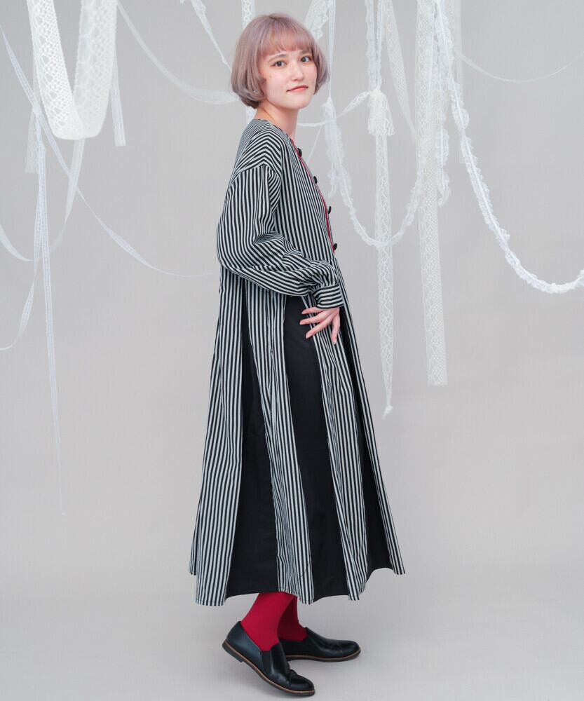 配色カラーワンピースの形はそのままに、ストライプ柄の生地を使用してお作りしました。