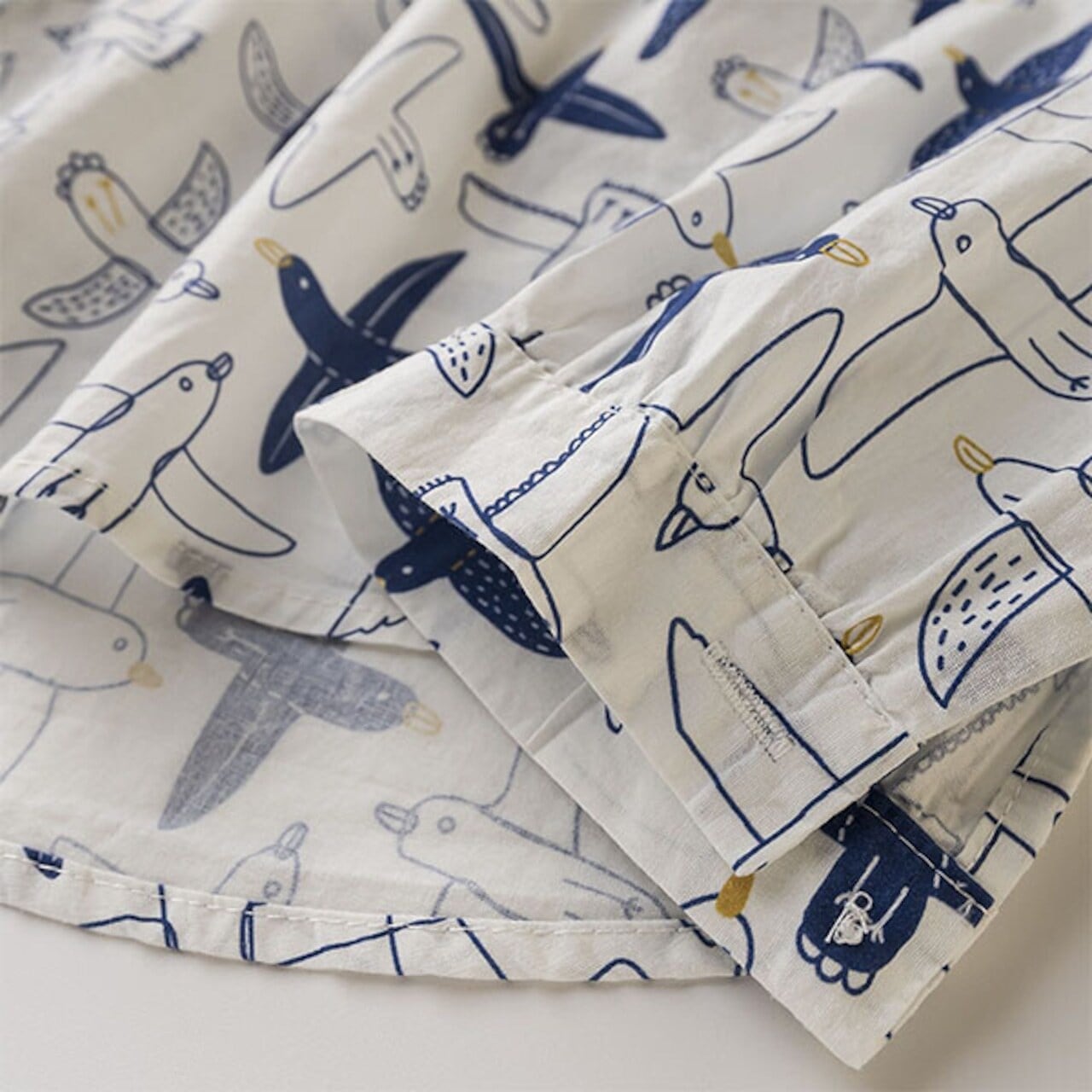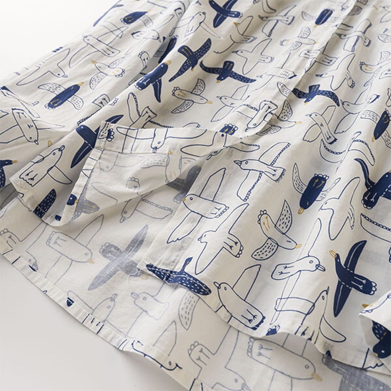 バードプリントシャツ 襟は刺繍花柄 2色展開 サイズフリー 平置き 身幅55cm 丈67cm 【素材・成分】 コットン